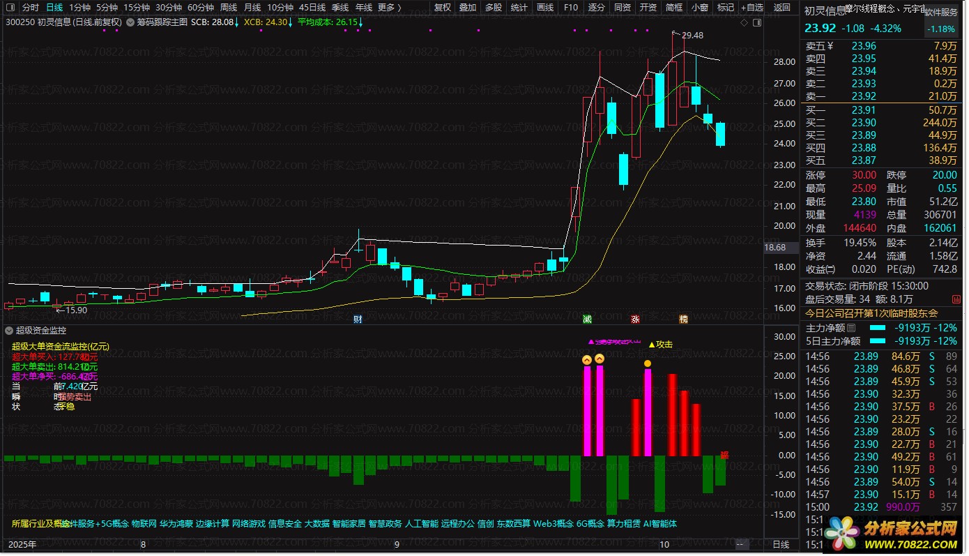 【超级资金监控】主力动向一目了然 本指标通过实时追踪超大单资金流向,精准捕捉主力操盘痕迹。核心功能包括: