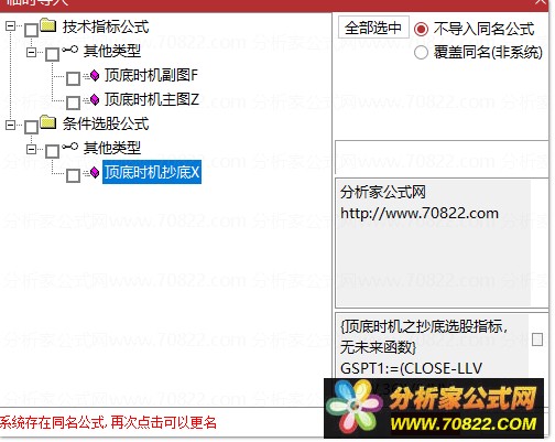 * 关于股票公式时间限制,如果在引入大智慧公式,交易师公式或者飞狐公式的时候,发现公式名称栏是空白的,这时候调整电脑时间到1997年,又能出现公式名称,并且能正常显示,可能是公式使用期限已过。