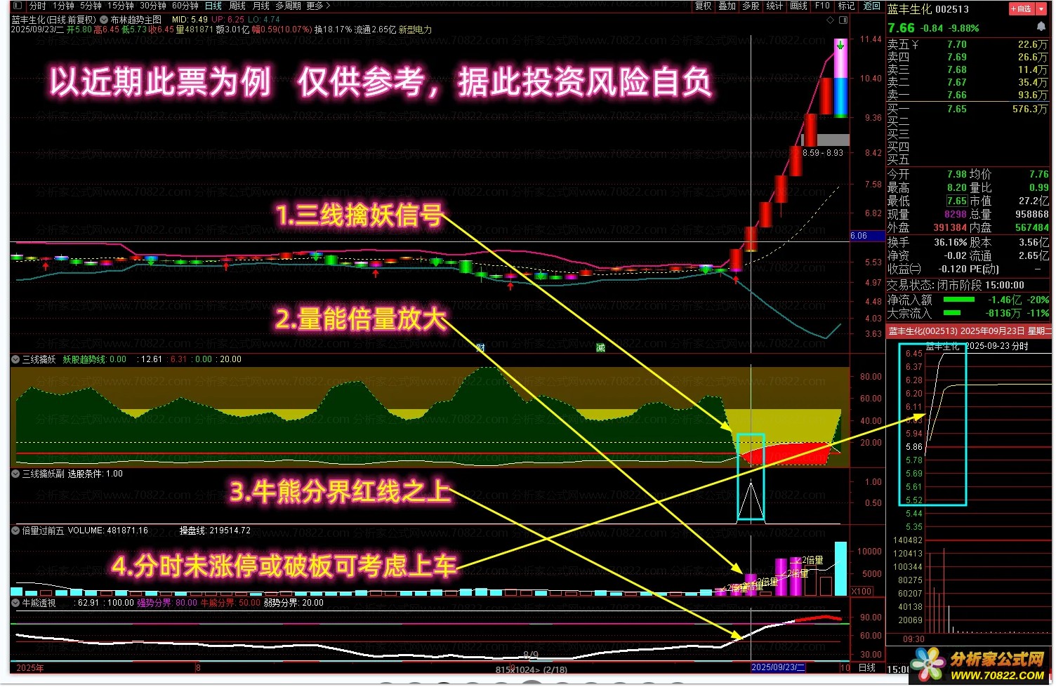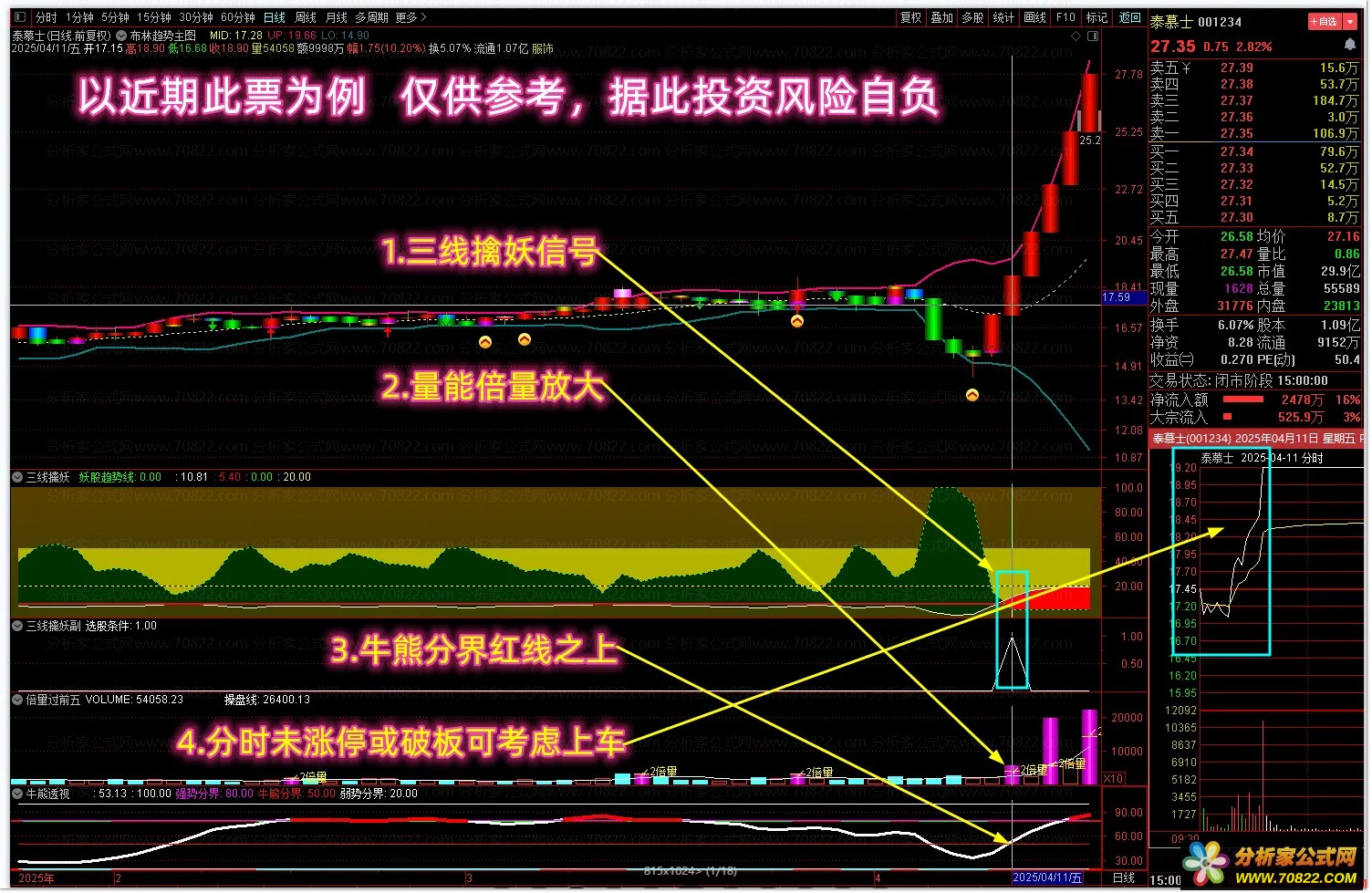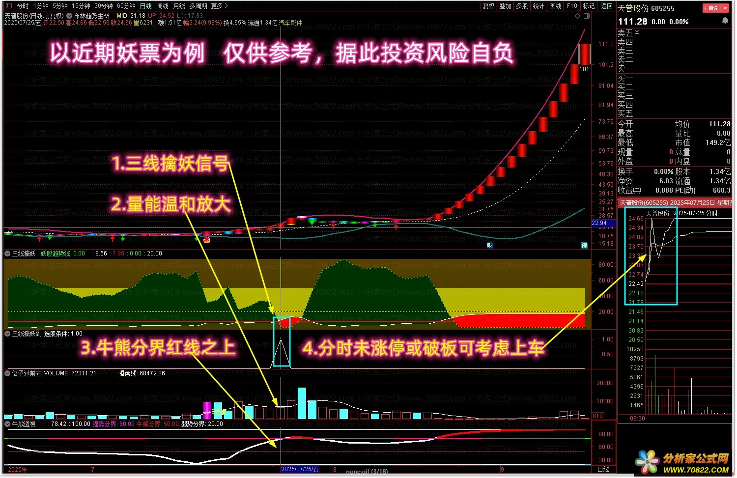 【多个牛叉指标共振B15】捕捉爆发行情信号 三线擒妖战法 无未来源码选股 三线擒妖战法副图指标,简单三句操作口诀: