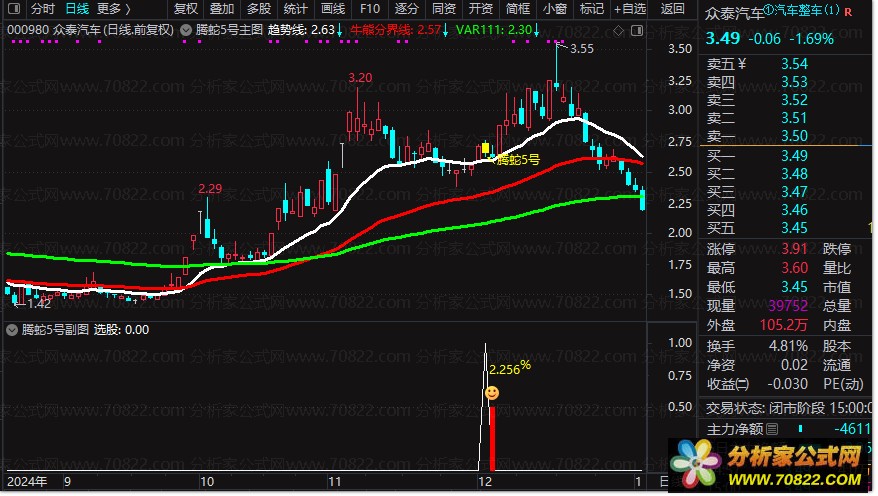 【腾蛇5号】主附图+选股指标,尾盘阴买思路 手机电脑通用 指标简介及使用说明