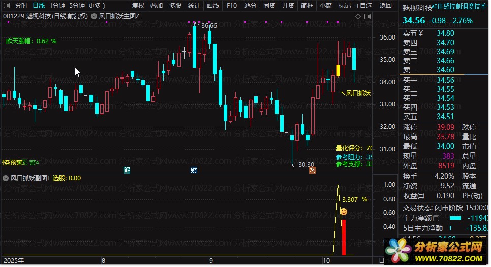 信号产生当日尾盘(14:30后)或次日开盘回踩5日线时是理想的介入时机。此时,量价合一指标通常显示价格与成交量配合良好,表明市场参与者增多,股票具有较高的上涨动力。