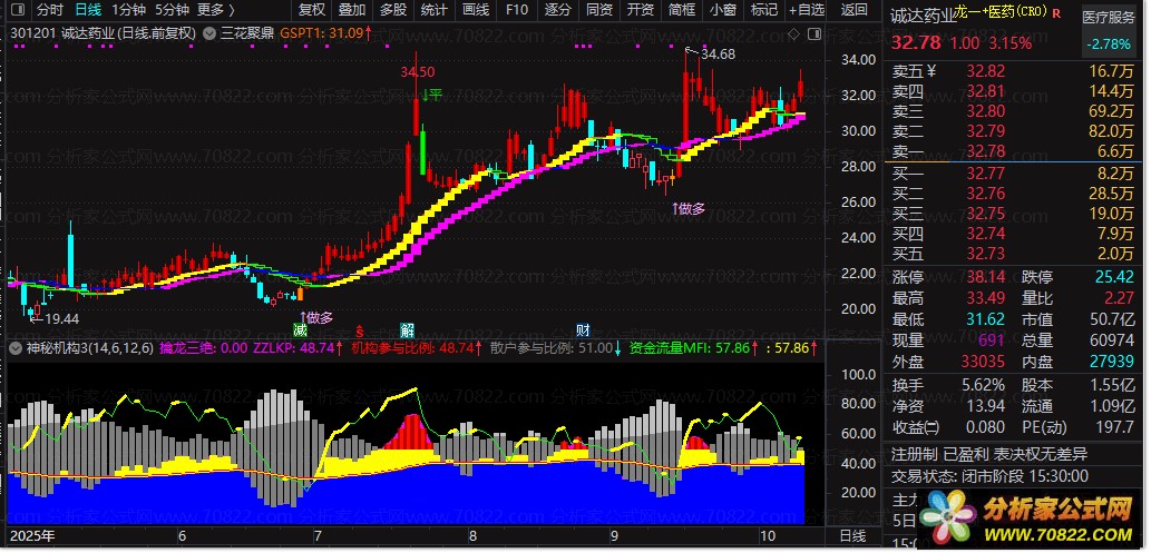 超卖信号捕捉:通过13日RSI指标低于20的超卖条件识别短期反弹机会,结合价格与34日均线的偏离度(如偏离低于-15),标注“短牛”和“迅速出击”等买入提示。