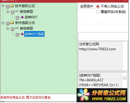* 关于股票公式时间限制,如果在引入大智慧公式,交易师公式或者飞狐公式的时候,发现公式名称栏是空白的,这时候调整电脑时间到1997年,又能出现公式名称,并且能正常显示,可能是公式使用期限已过。