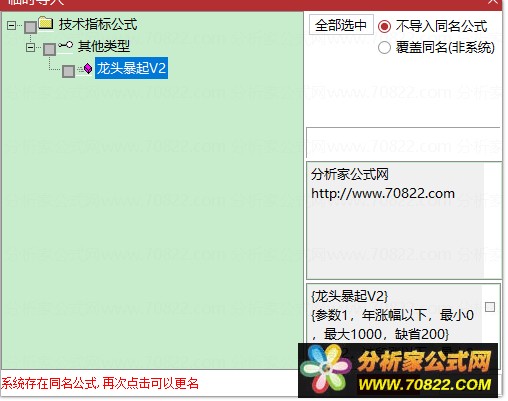 * 关于股票公式时间限制,如果在引入大智慧公式,交易师公式或者飞狐公式的时候,发现公式名称栏是空白的,这时候调整电脑时间到1997年,又能出现公式名称,并且能正常显示,可能是公式使用期限已过。
