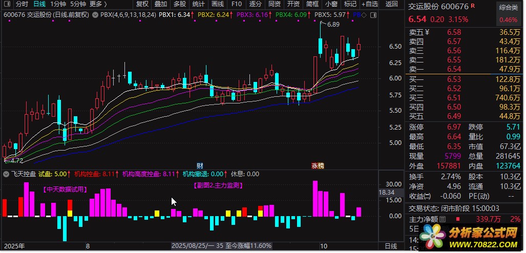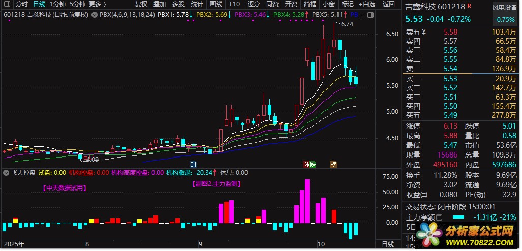 【飞天控盘】主力动向雷达图 本公式通过多维度指标监测主力行为,