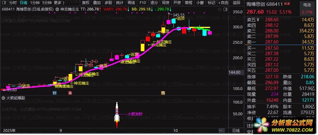 总结:神龙擒庄指标通过跳空放量、均线支撑等形态锁定庄股启动点,结合量化买点与风控,简化跟庄策略,适用于趋势明朗后的右侧机会捕捉。