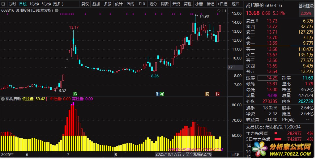 3. 当控盘度≥50/60/80时,依次显示黄、红、洋红柱状,颜色越艳,主力越凶;柱体缩短代表控盘松动,随时可能洗盘或派发。