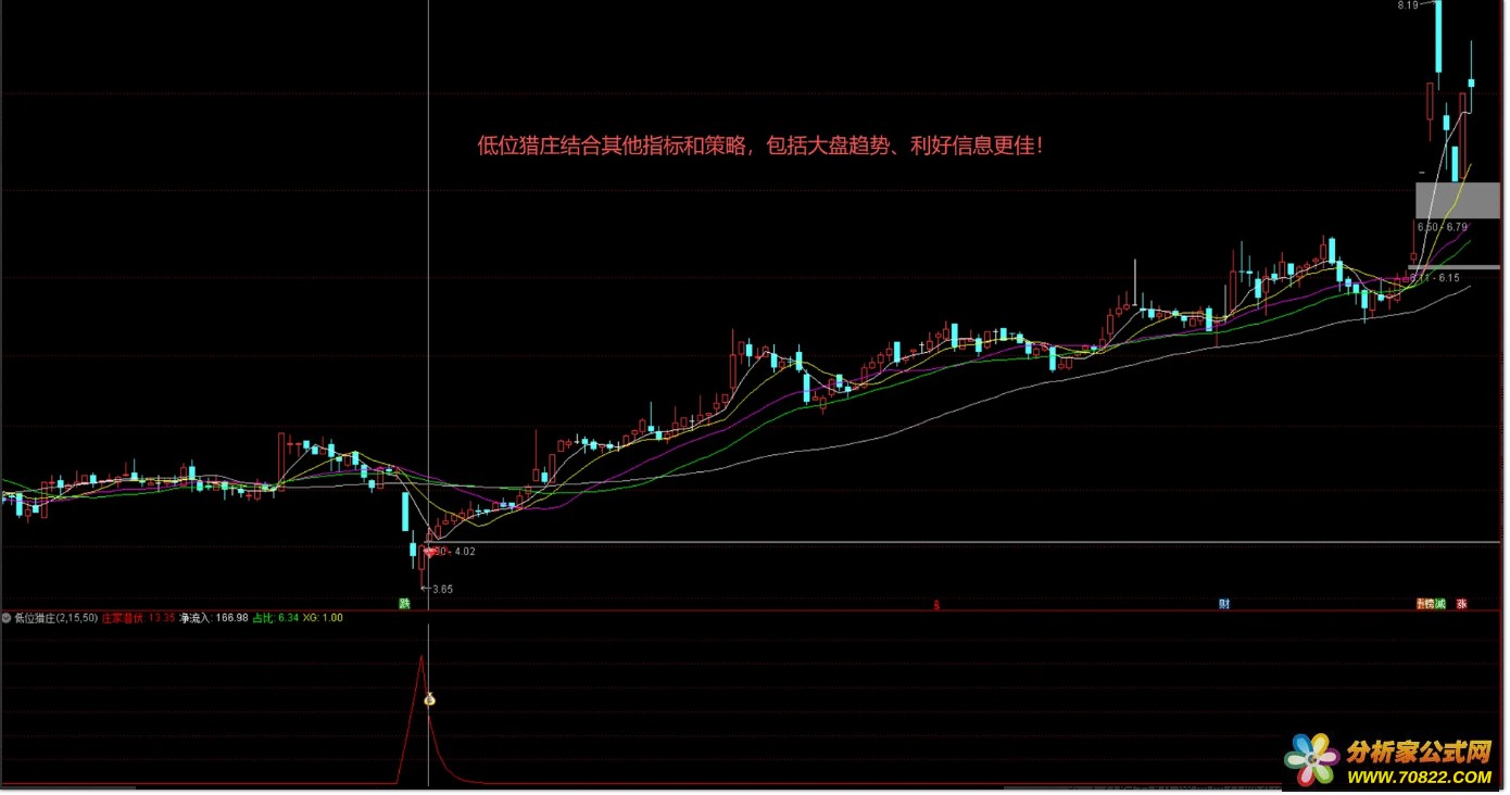 〖低位猎庄〗副图+选股指标,精准捕捉庄家潜伏低位,轻松搭便车盈利秘籍 你是否渴望敏锐发现庄家潜伏初期的蛛丝马迹,及时低位跟进实现神不知鬼不觉搭便车?甚至让庄家误以为你是同伙,最终收获丰厚收益改善家庭生活?这正需要通达信低位猎庄指标来助力实现。