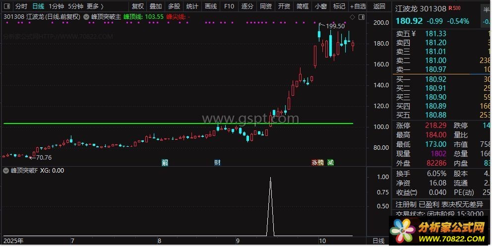 峰顶突破主图选股指标使用详解及风险应对 “峰顶突破”主图与选股指标无未来函数,核心功能是精准捕捉突破形态股票,筛选优质交易标的辅助看盘。该指标需结合使用者策略发挥效用,善用者可借其把握主升浪行情,增强持仓信心。
