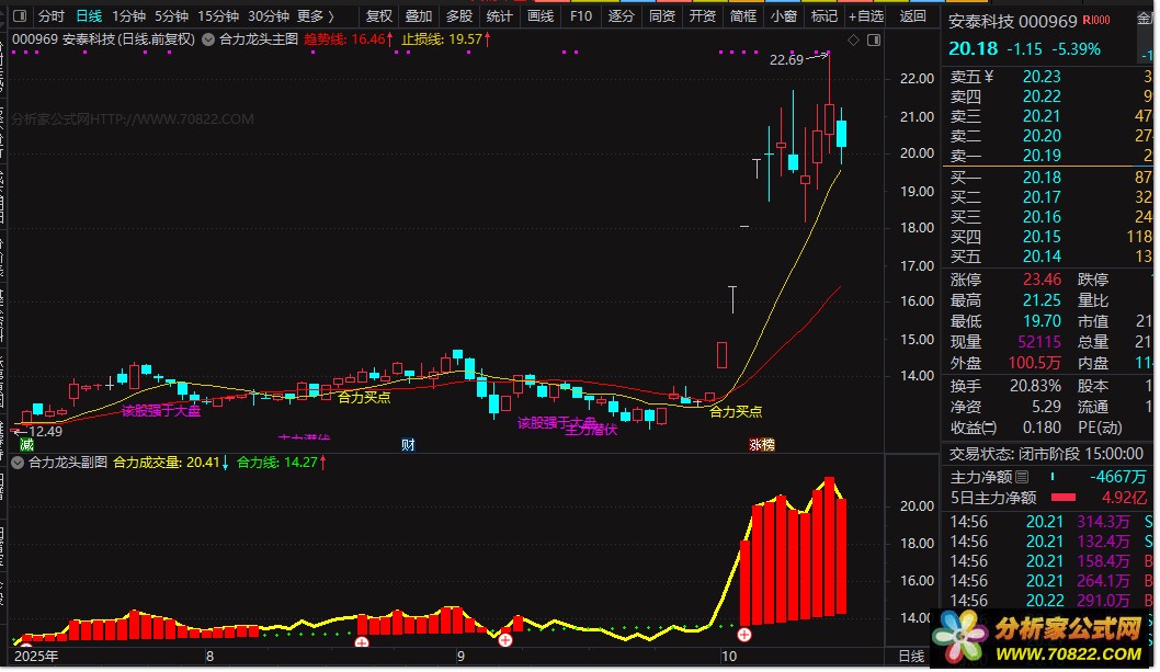 〖合力龙头〗主副图选股 短线合力龙头指标 源码 合力龙头指标使用说明如下:
