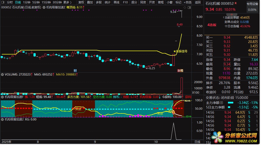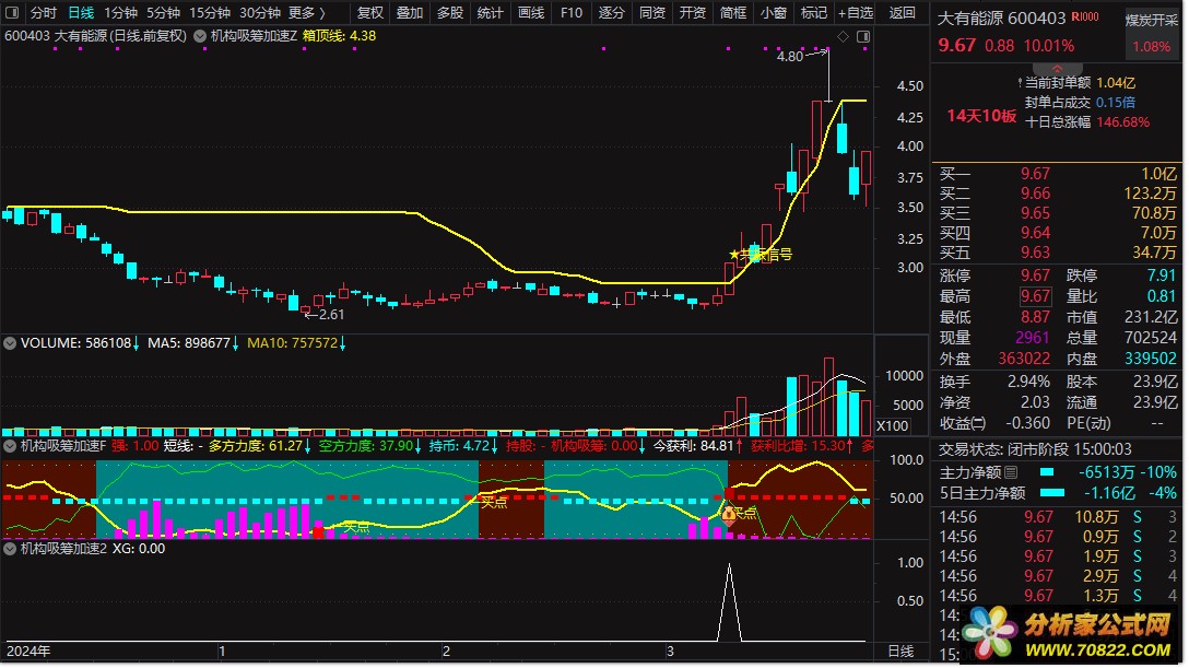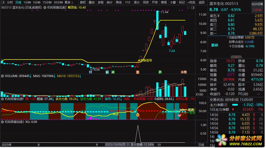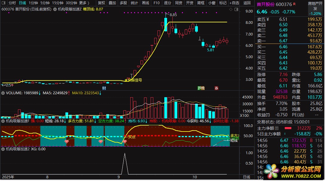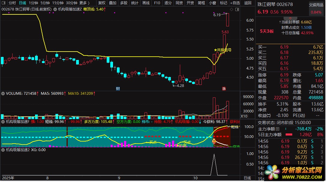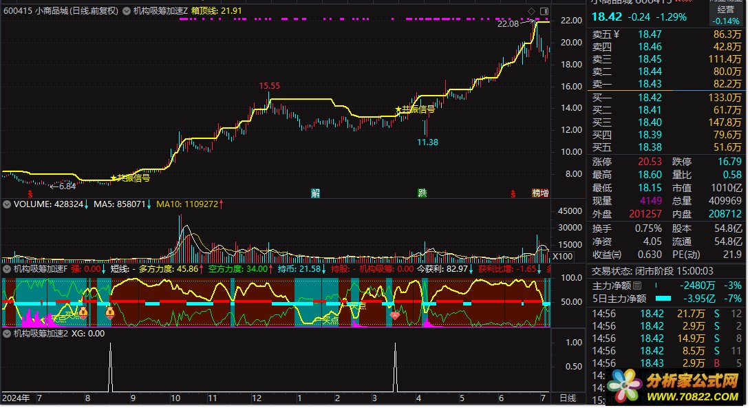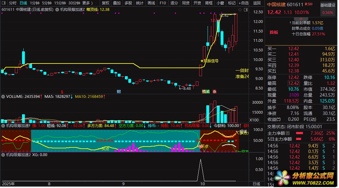 【机构吸筹加速指标】 包含有:主副图+选股指标 精准捕捉趋势启动点 捕捉大牛 首开股份 蓝丰生化等等 筹码类型指标公式最擅长捕捉大牛。