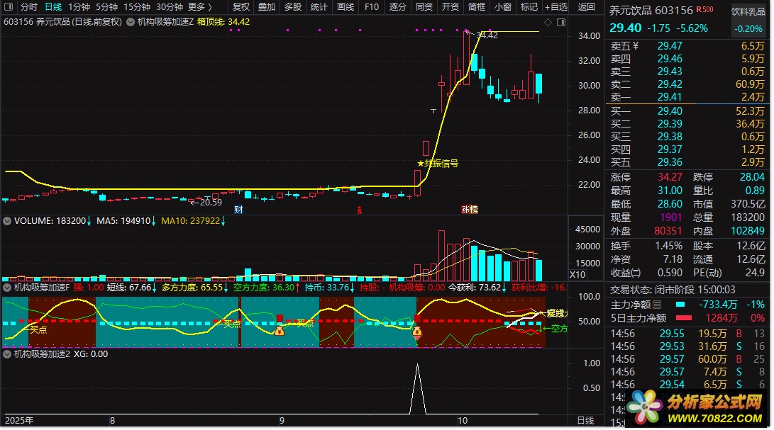 本指标通过价格突破、量能异动、多空力度转换三大技术维度,识别股价走势中的多重共振信号。当价格突破前期震荡区间上沿、量能同步放大、多空力量发生逆转三个条件同时满足时,系统自动标注"共振信号",提示潜在趋势启动机会,助力投资者把握机构吸筹加速的关键节点。