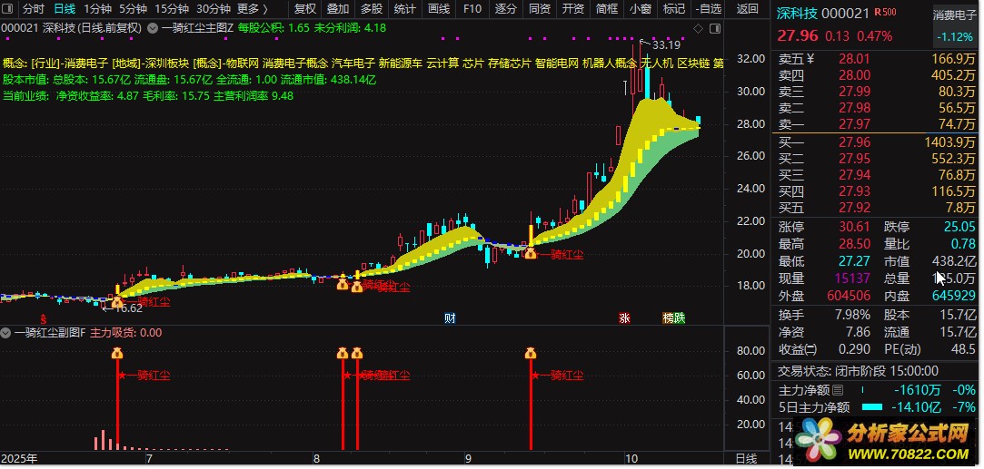 【一骑红尘】通达信主副图+选股指标 无未来函数精准策略 使用说明: