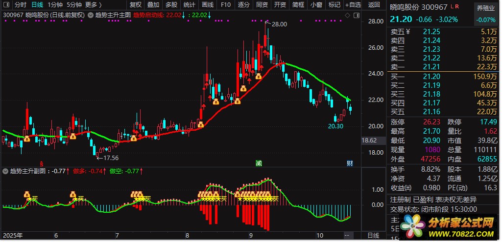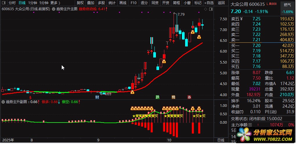 〖趋势主升〗主图+选股指标:精准捕捉趋势启动的股神级工具 趋势主升指标是一款专为通达信软件设计的技术分析工具,结合主图与选股功能,帮助投资者有效识别个股趋势启动时机。该指标通过直观的图形信号,简化了趋势判断的复杂性,是提升交易决策效率的实用工具。