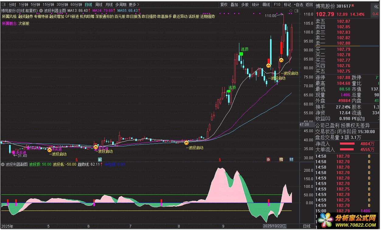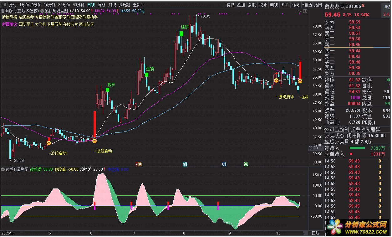 【波段利器】主副图+选股,很好用的波段顶底指标公式 波段利器指标使用说明如下: