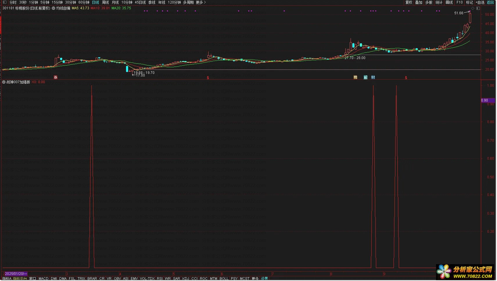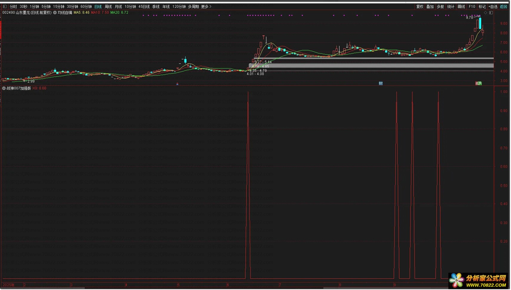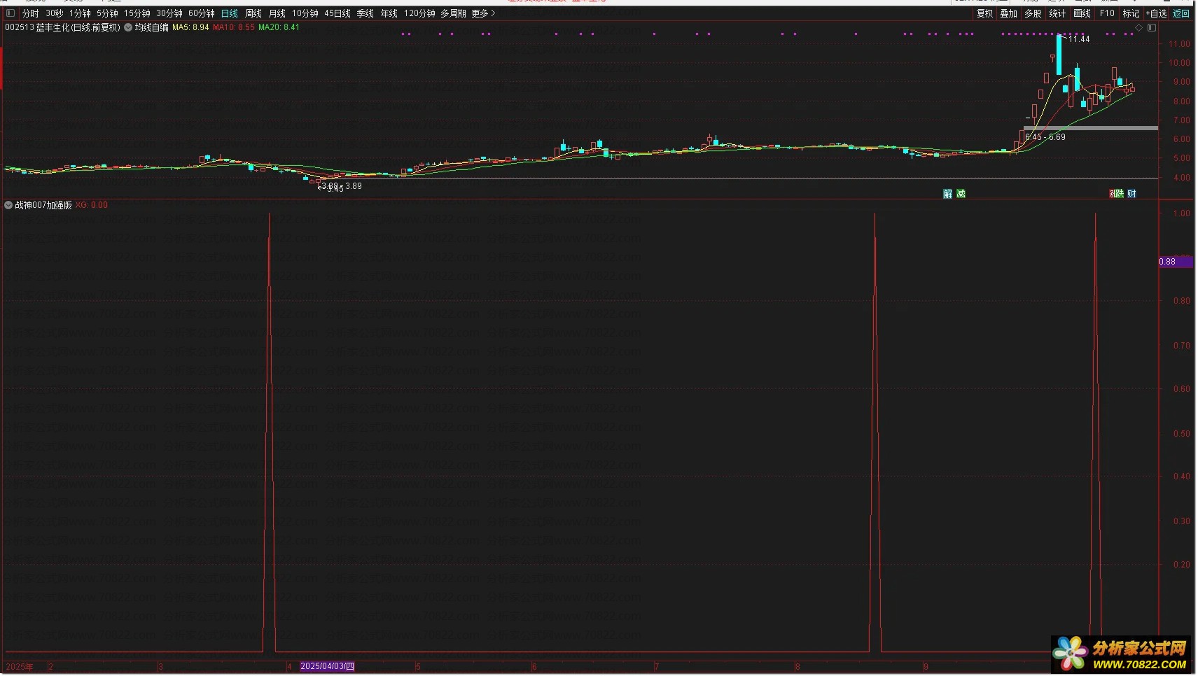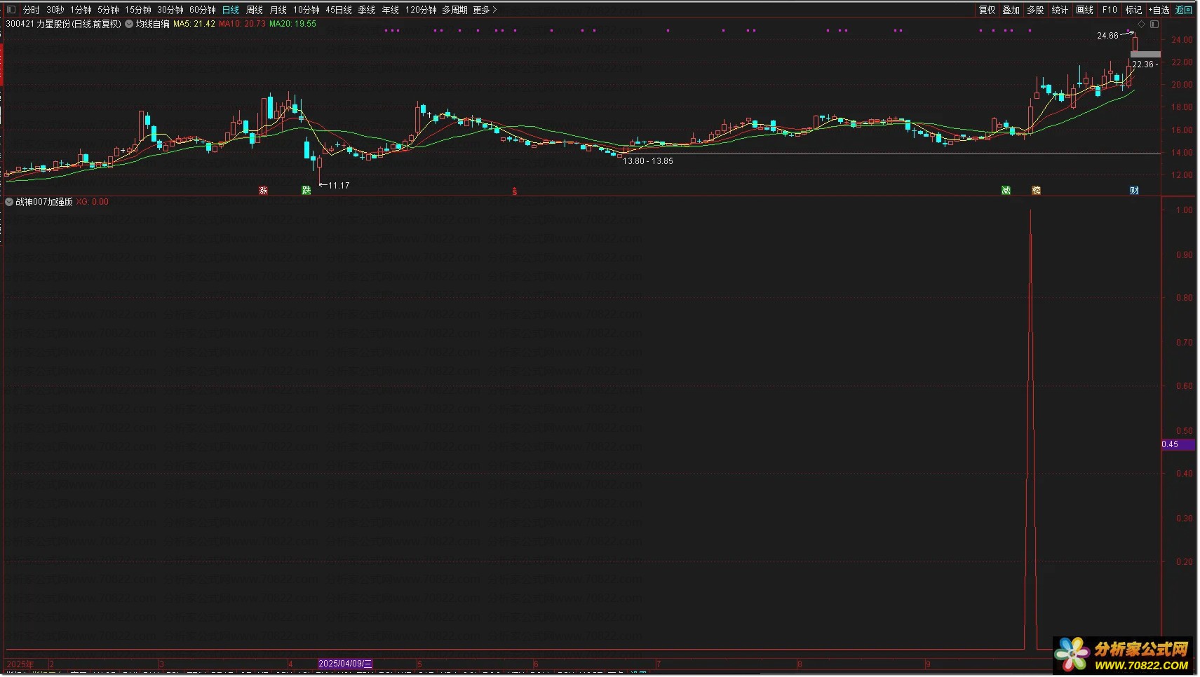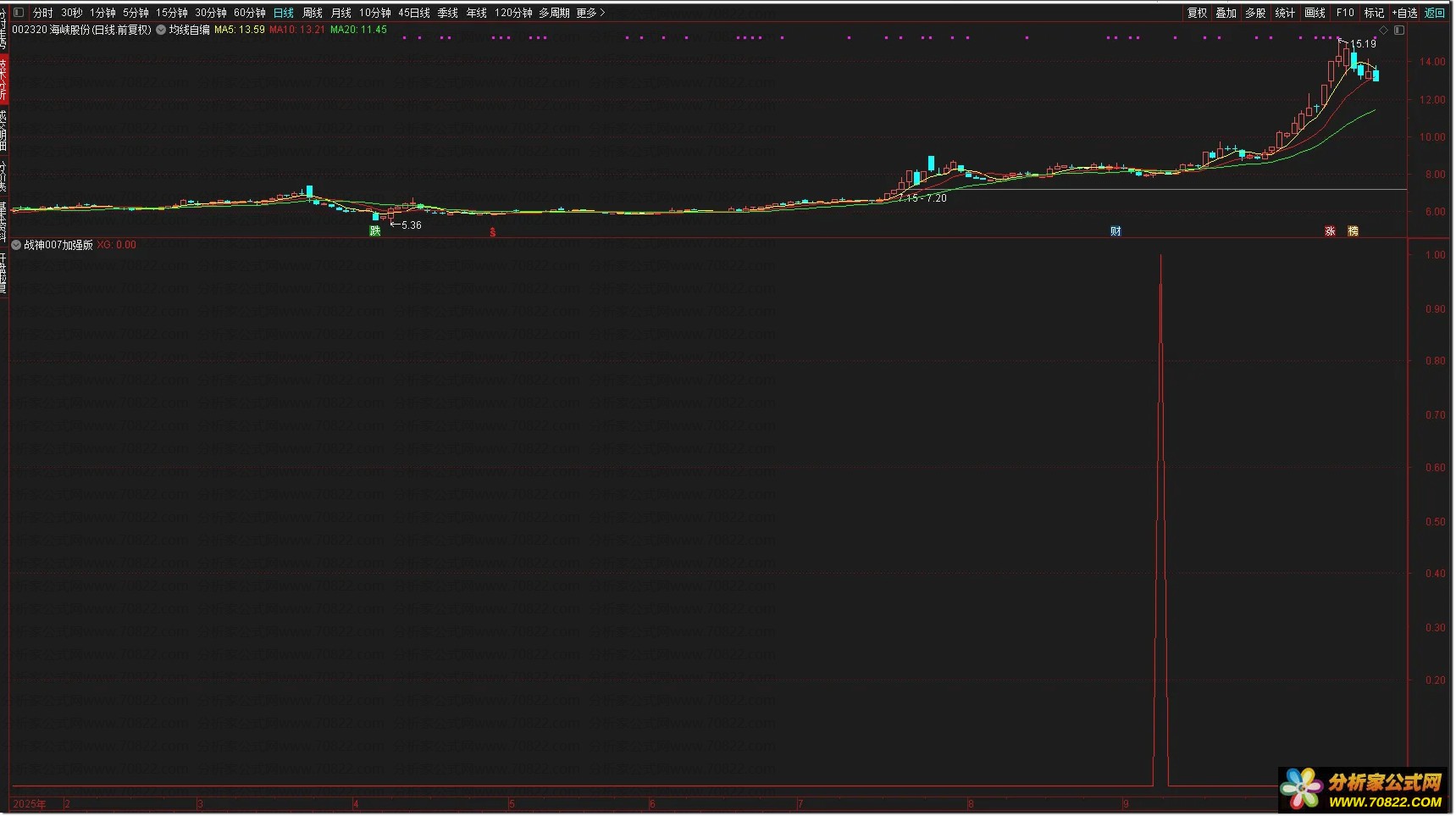 该指标是私人珍藏,战神007加强版,源码公开,无时间限制,无DLL文件 码力金矿老师