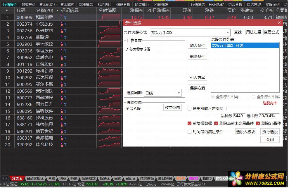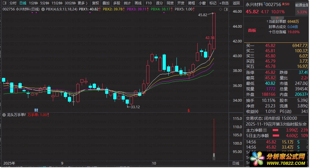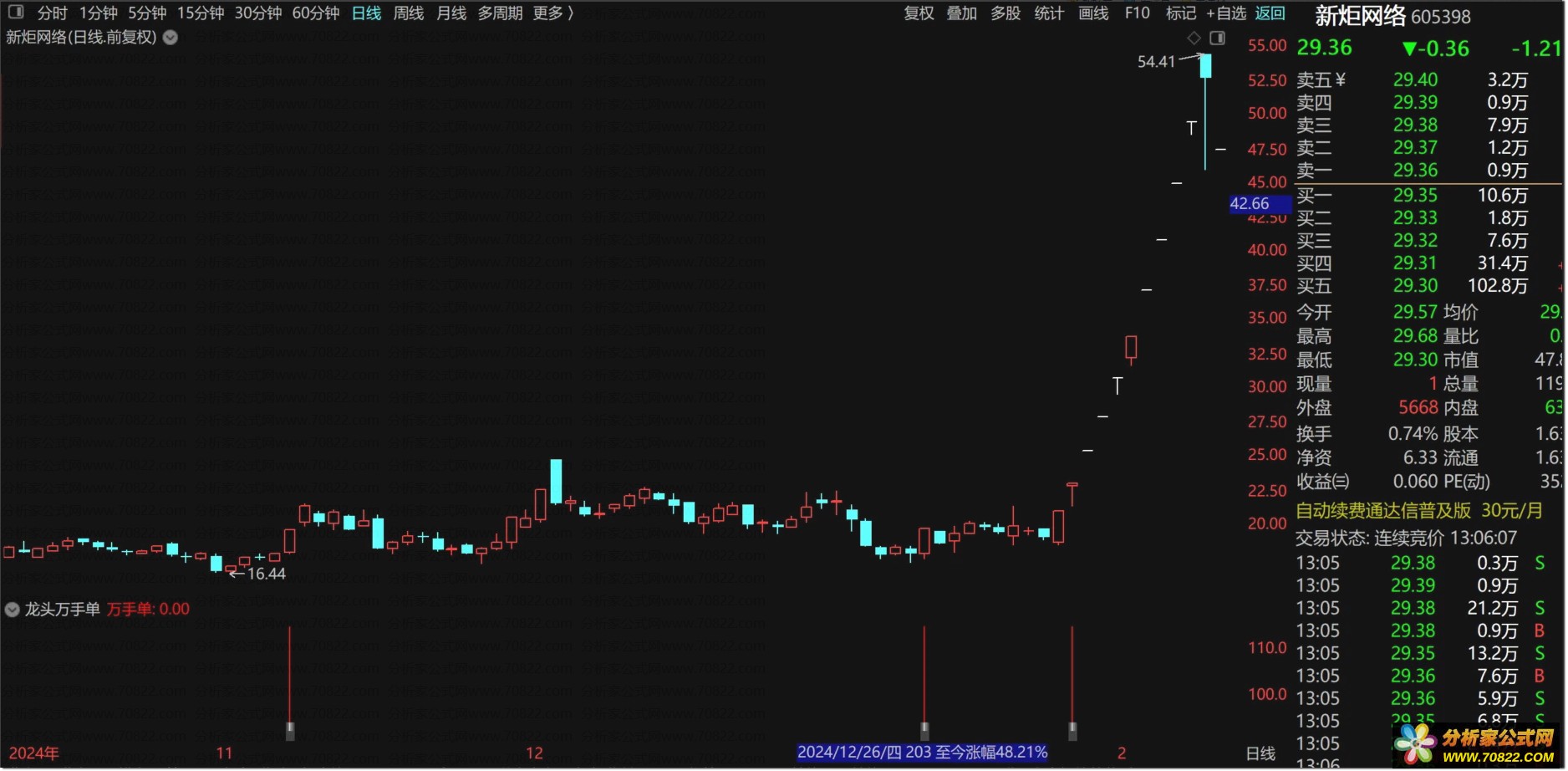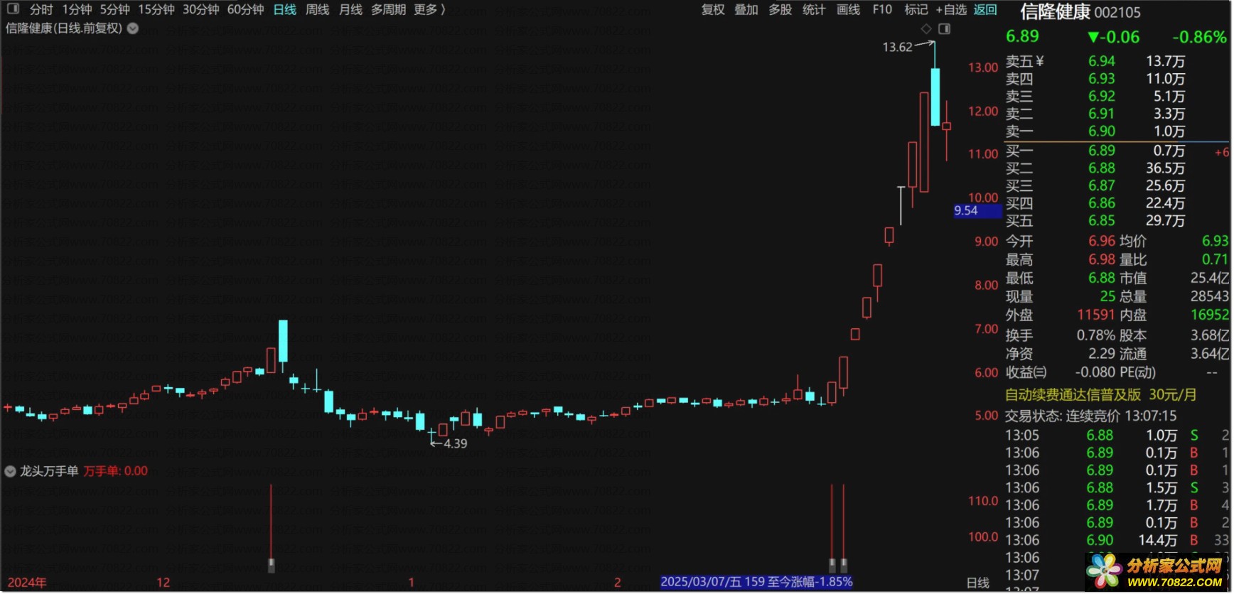 〖龙头万手单〗副图+选股指标,没有未来函数 龙头万手单是副图指标,没有未来函数,信号出现在首板和二板位置,以首板居多,喜欢的朋友可以下载下来研究下,不喜欢的勿下!