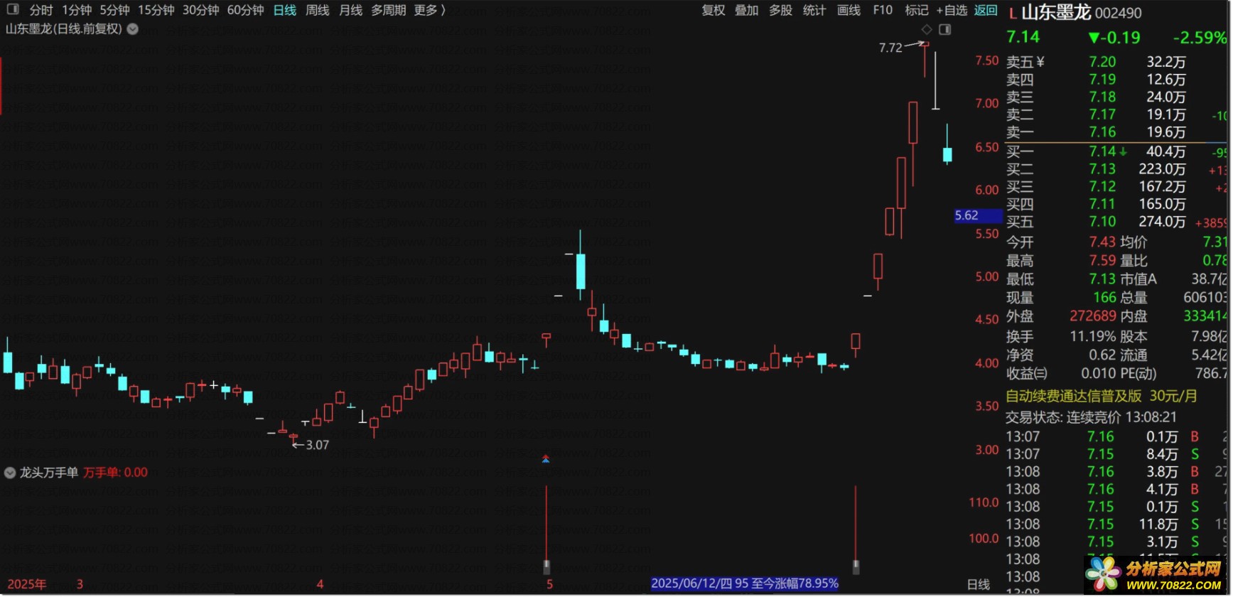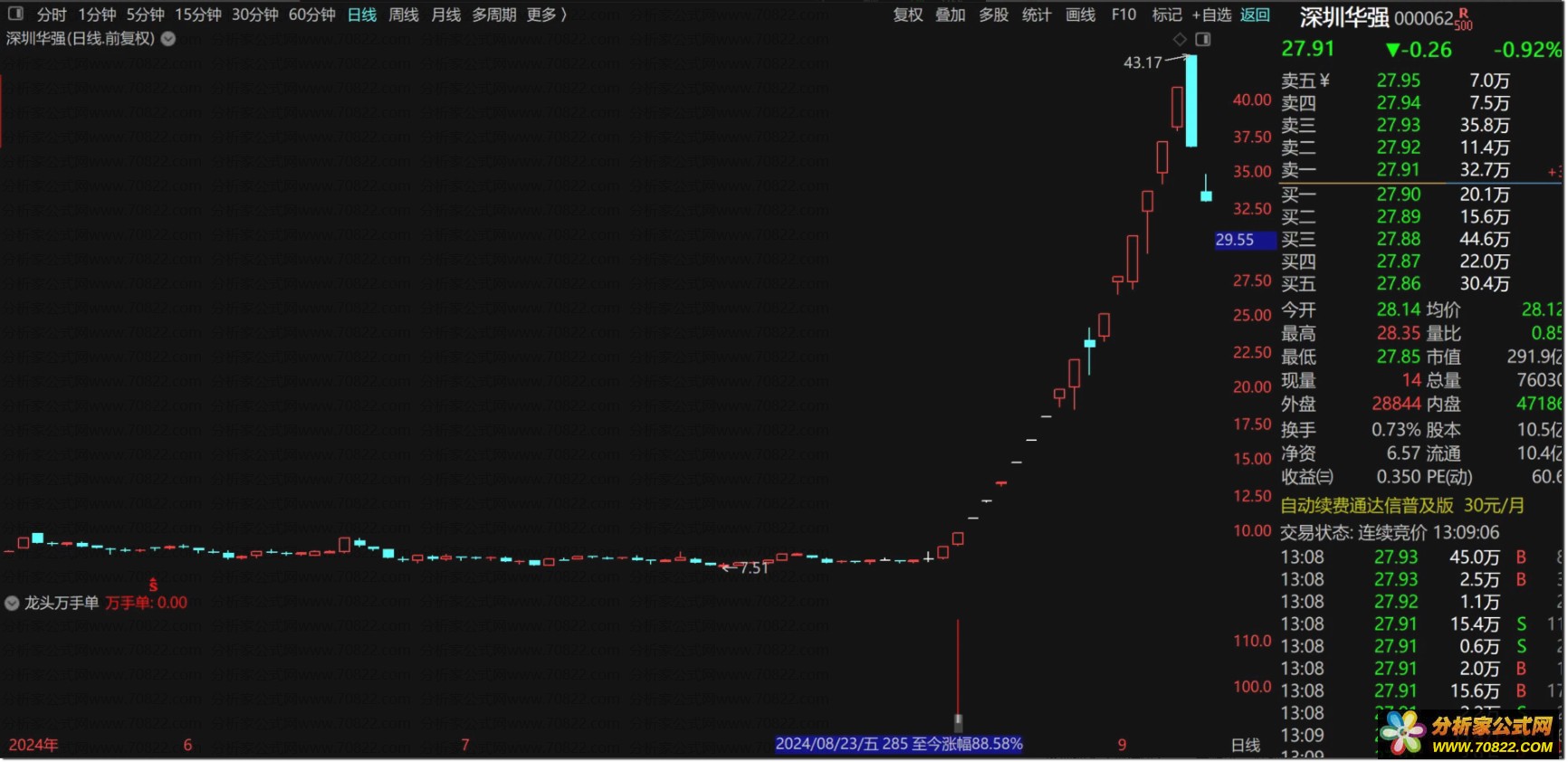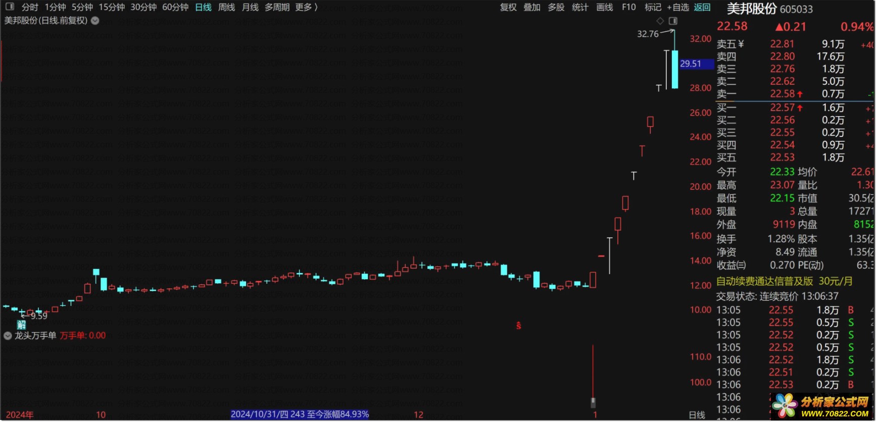 〖龙头万手单〗副图+选股指标,没有未来函数 龙头万手单是副图指标,没有未来函数,信号出现在首板和二板位置,以首板居多,喜欢的朋友可以下载下来研究下,不喜欢的勿下!
