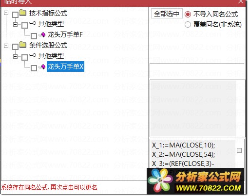 * 关于股票公式时间限制,如果在引入大智慧公式,交易师公式或者飞狐公式的时候,发现公式名称栏是空白的,这时候调整电脑时间到1997年,又能出现公式名称,并且能正常显示,可能是公式使用期限已过。