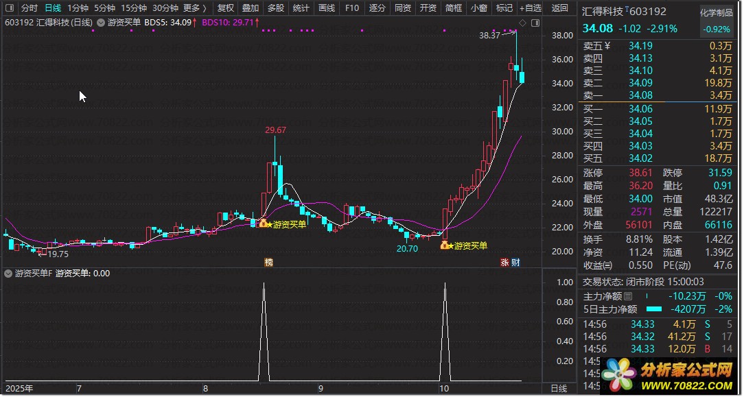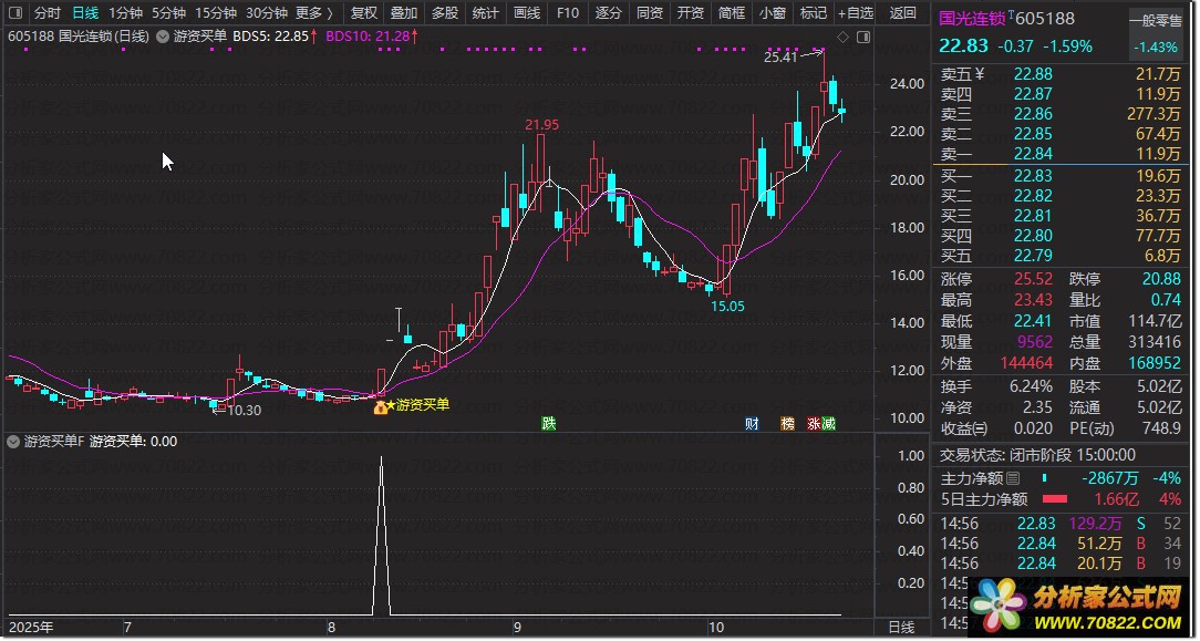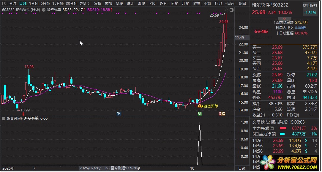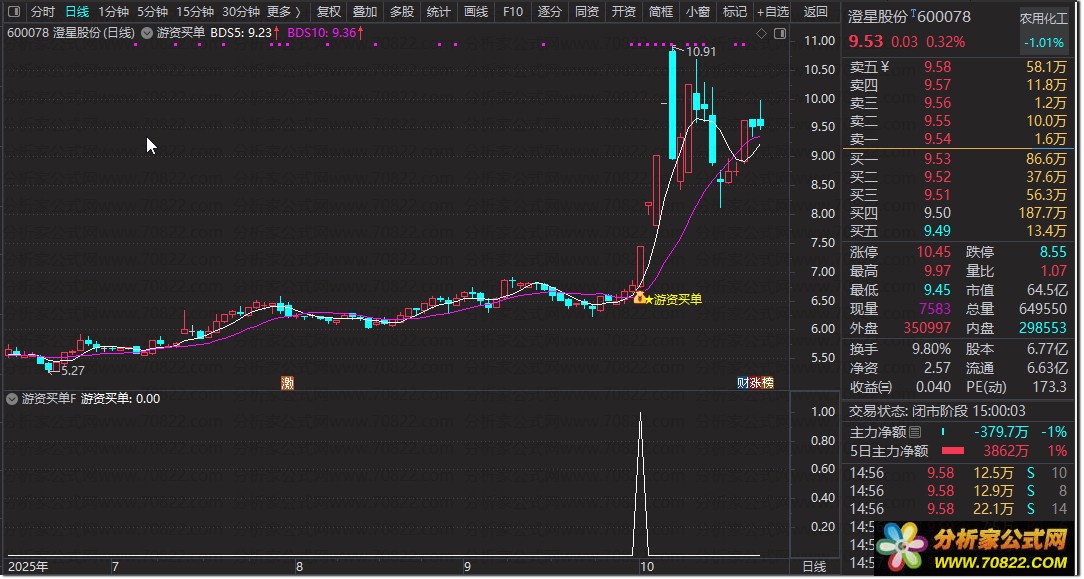 | 『游资买单』策略解析 游资扫货次日冲板概率提升,捕捉很多大牛的指标。 该指标专为识别短期强势股设计,核心逻辑从价格波动率、成交量变化及均线系统三个维度综合筛选标的,需满足以下三个核心判断条件。 价格层面需突破近期价格波动区间上沿压力位,这是捕捉游资扫货后次日冲板的关键信号。 成交量层面需呈现资金持续流入的明确态势,体现游资买单的持续性特征。 均线层面短期、中期、长期均线需形成多头排列形态,构成股价上行的基础支撑结构。 使用方法:盘中预警并买入的话,估计大部分的散户是没有这个能力综合分析各种因素的,建议盘后选股次日择机买入。          附件里的公式如上图,1个主图1个副图和1个选股,不加密,提供源码文本txt。 |