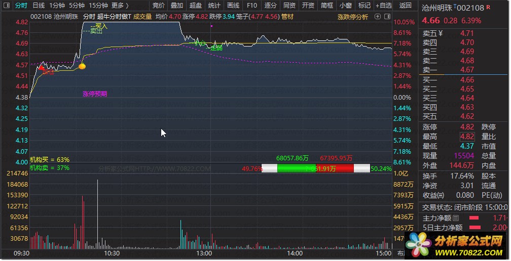 2.核心功能聚焦分时主图指标分析,适配做T操作场景。