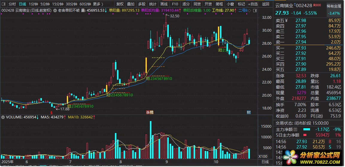 - 定义“单阳”为涨幅超5%且成交量倍增的K线,自动标记为青色柱体。