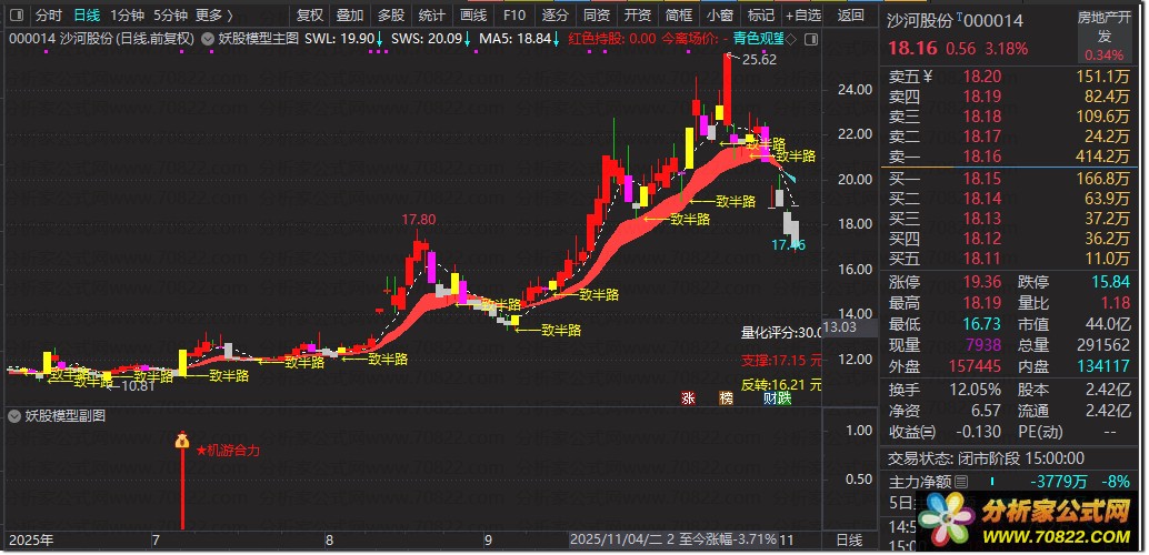 本指标专注于捕捉连板妖股机会,通过主图半路追涨信号与副图机游合力信号的双信号共振,形成确定性买入点。该技术指标由机构与游资共同研发,结合主图副图双重验证,精准锁定妖股启动时机。