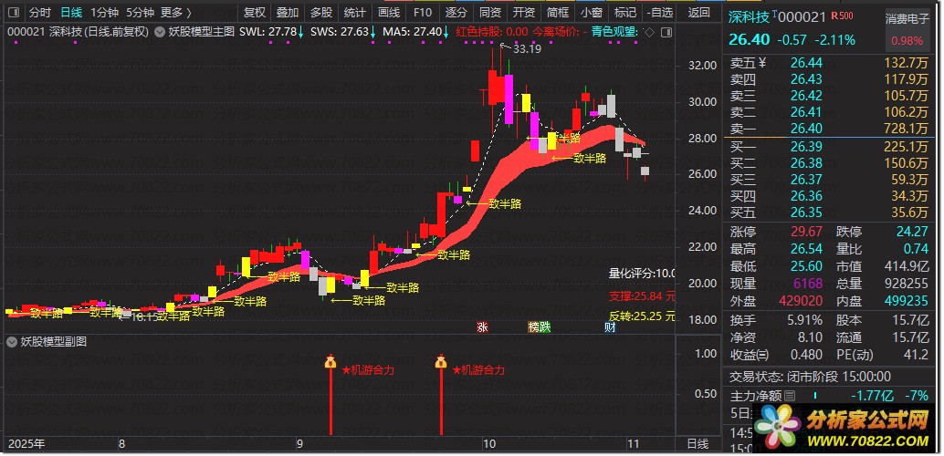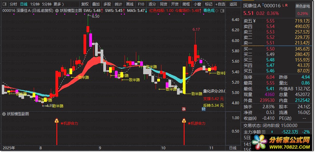 核心优势方面,主图指标提供半路追涨信号,在妖股拉升初期即发出提示,适合短线快速跟进;副图机游合力信号则通过机构与游资资金动向分析,进一步确认买入时机的可靠性。二者共振时,形成强有力买入信号,有效提升操作胜率。