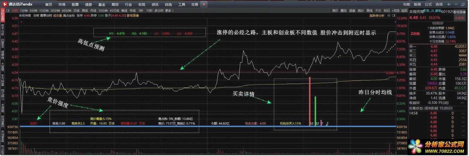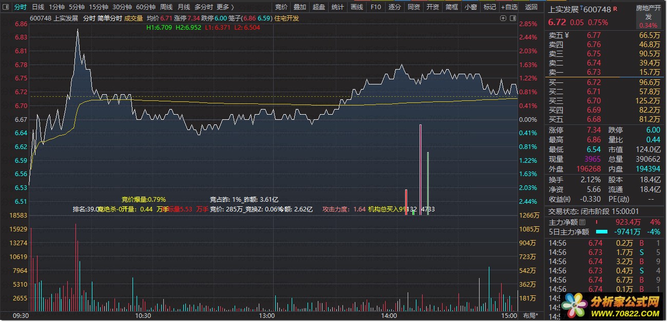 〖简单分时〗分时副图,数据一目连然,适合竞价打板的朋友 附加了竞价数据、排名、攻击力度、资金买卖详情、最低最高值预测、同时改良了墨轩分时四条线的显示,不会造成压缩分时主图。