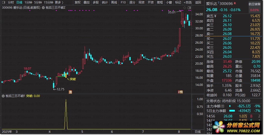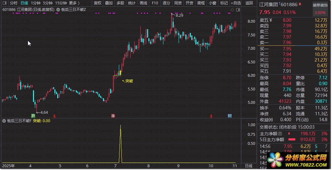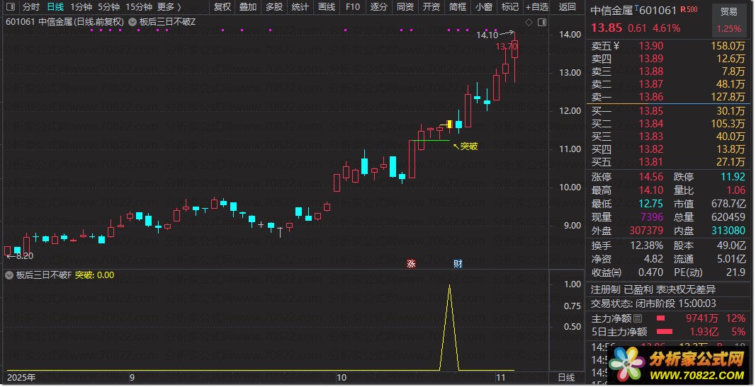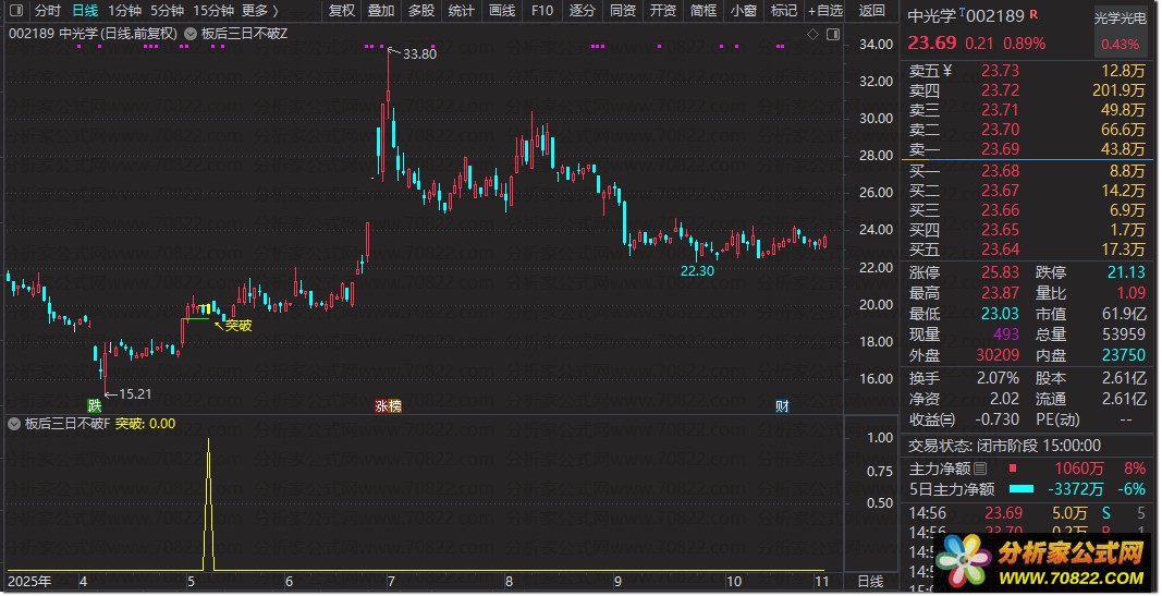 【三日不破】捕捉首板后整理突破形态的指标,信号少而精,无未来函数 主图副图选股