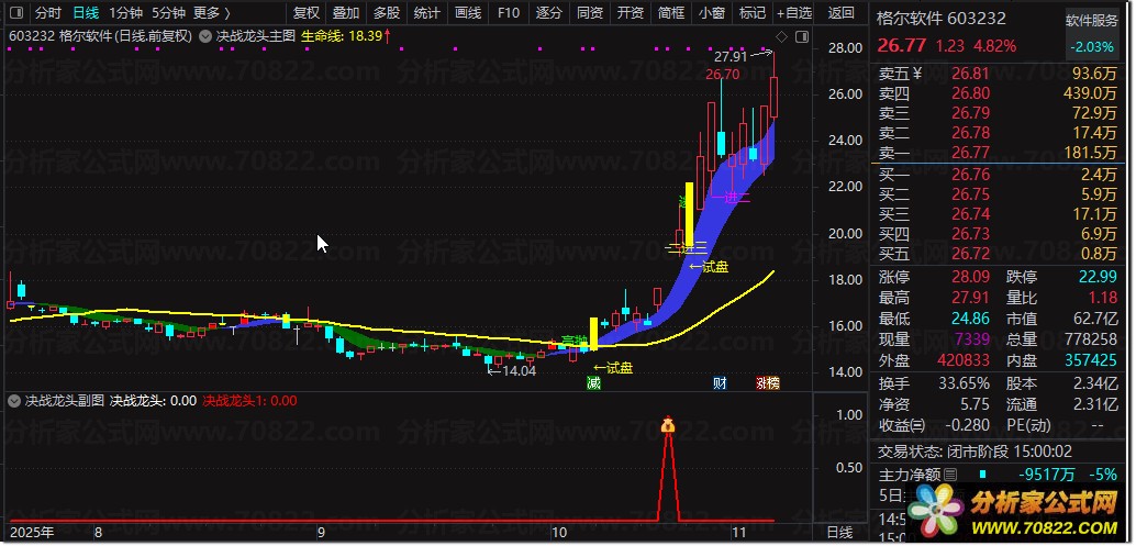 妖狐王〖决战龙头〗一个指标大幅提高连板成功率,主副图+选股指标 决战龙头指标使用说明如下: