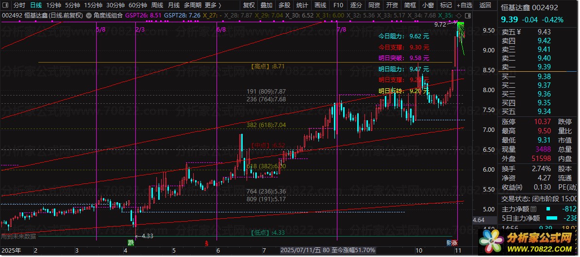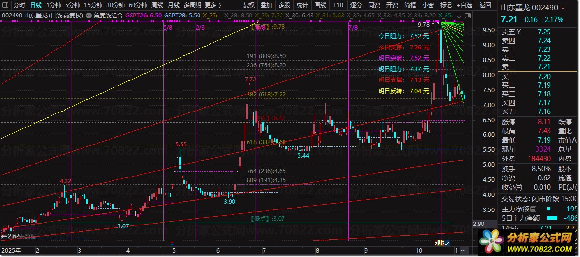 威廉江恩〖角度线组合〗主图,支撑压力划线指标类型 提示:画线类公式,多含有未来函数,介意勿下。