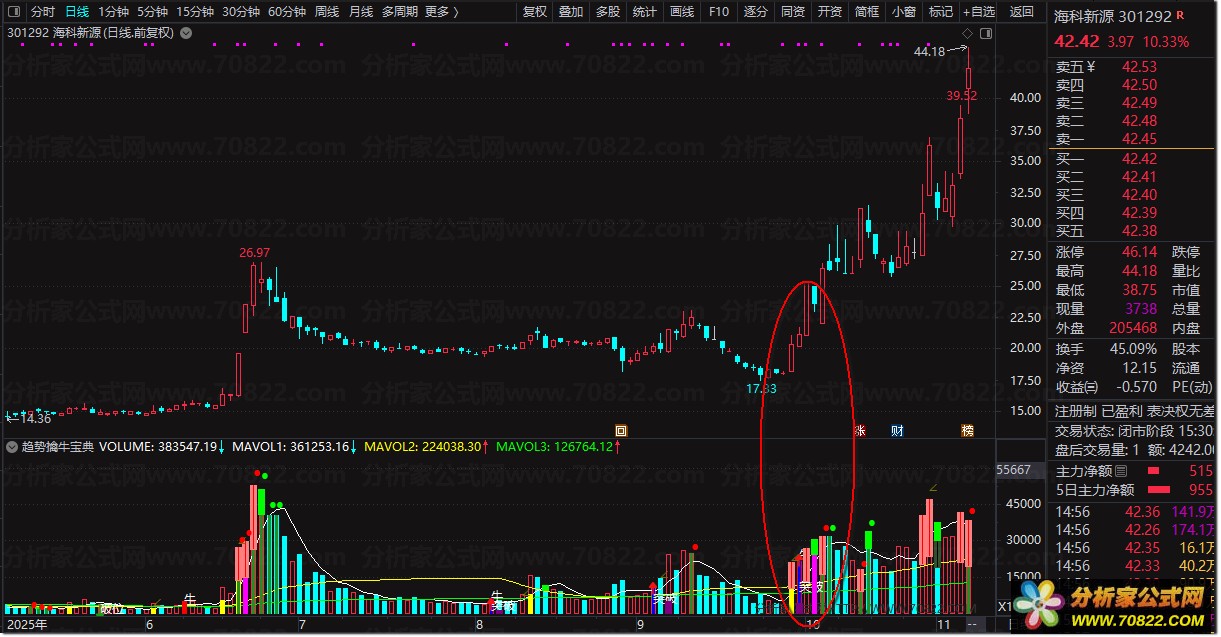 采用20周期震荡指标监控短期超卖区域,配合K线形态捕捉起涨点。"牛"信号在量价齐升时自动标记,精准识别启动时机。