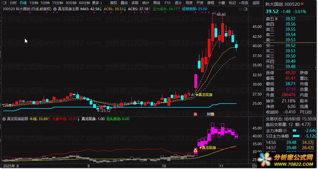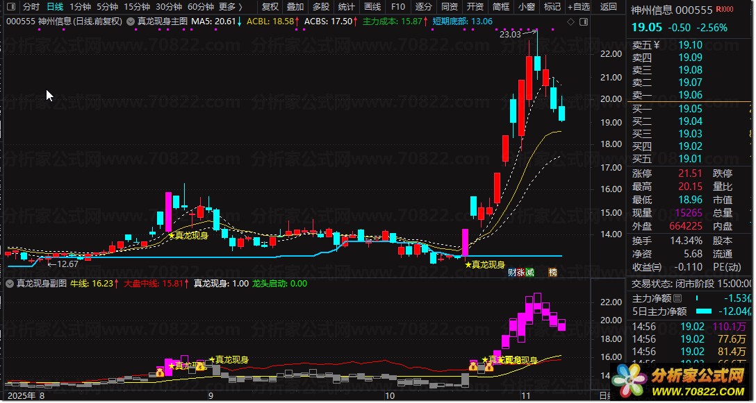〖真龙现身〗主副图+选股指标,连板龙头打板策略首选 真龙现身指标使用说明如下: