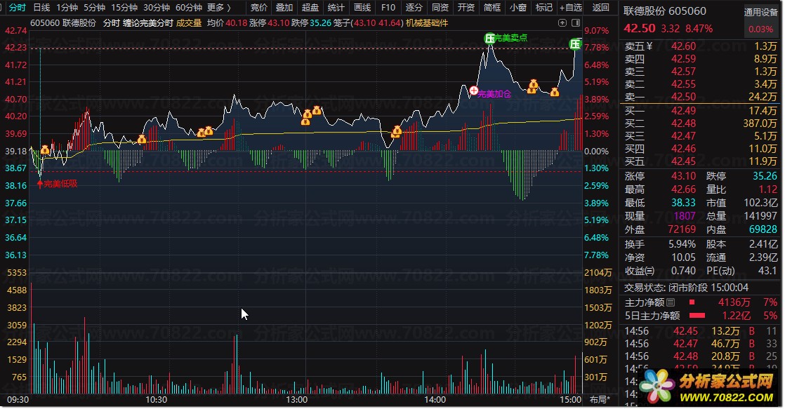 完美卖点信号明确分时卖出时机,完善缠论分时交易闭环。