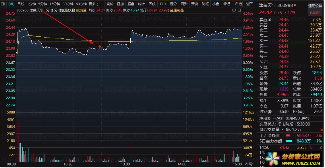 【分时低吸妖股】实测高胜率分时图指标 低吸妖股必备策略 分时低吸妖股指标使用说明如下: