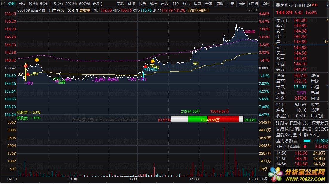 1.本指标专用于分时图主图分析,可精准定位分时图关键买卖点,适用于缠论技术学习者及实战交易者。