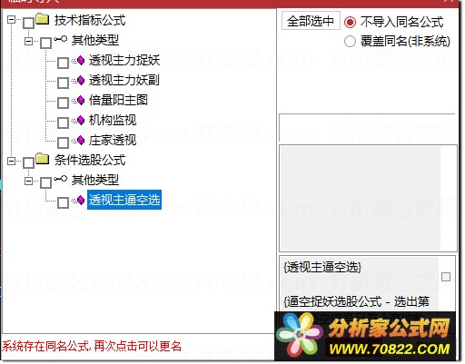 * 关于股票公式时间限制,如果在引入大智慧公式,交易师公式或者飞狐公式的时候,发现公式名称栏是空白的,这时候调整电脑时间到1997年,又能出现公式名称,并且能正常显示,可能是公式使用期限已过。