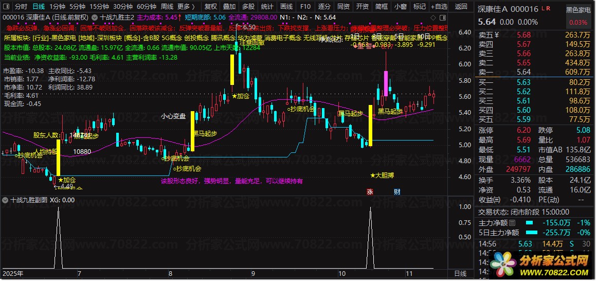 支撑压力参考:股价回踩短期底部线或30日线不破且量能萎缩,可低吸;遇前期高点放量不破,可止盈;