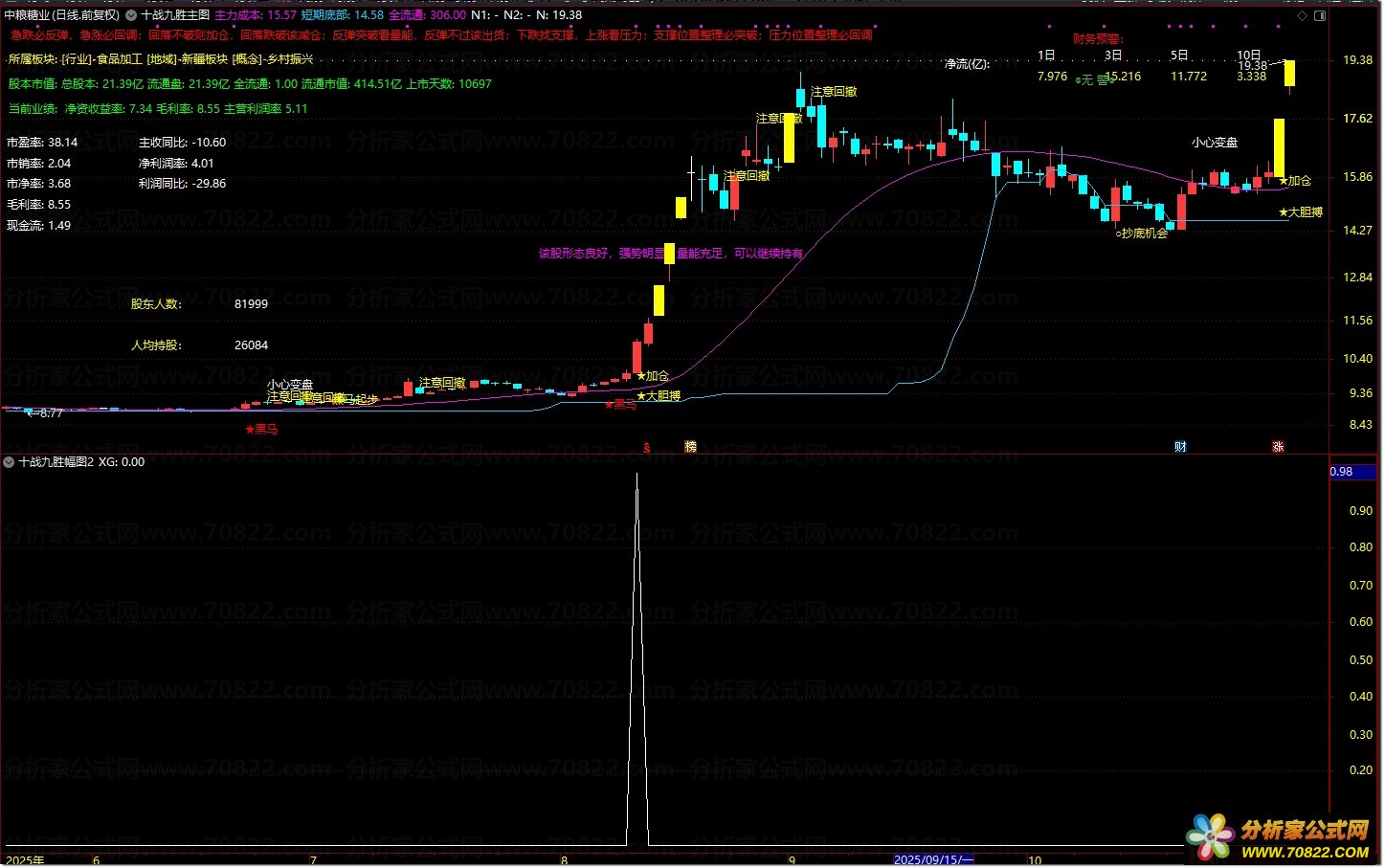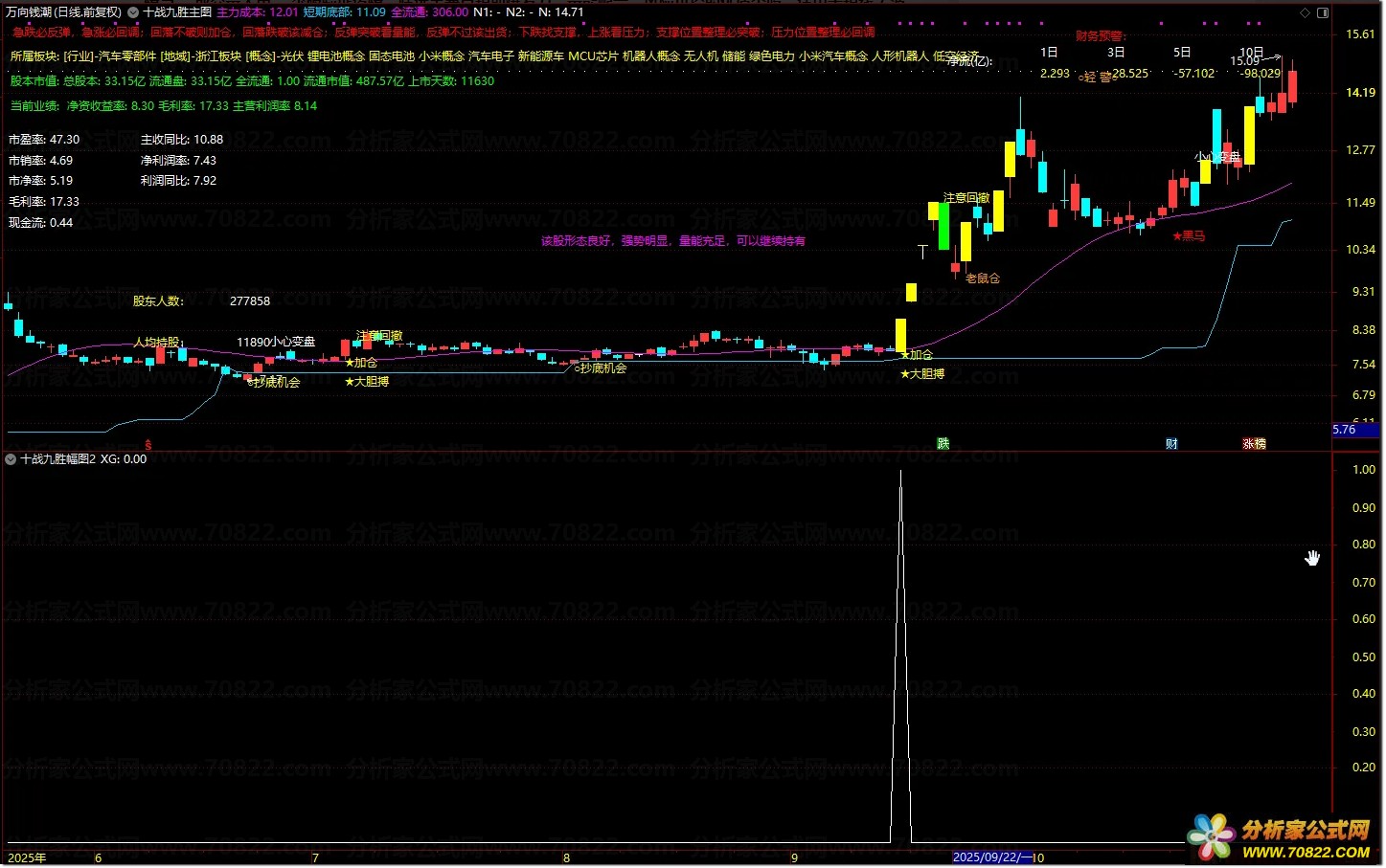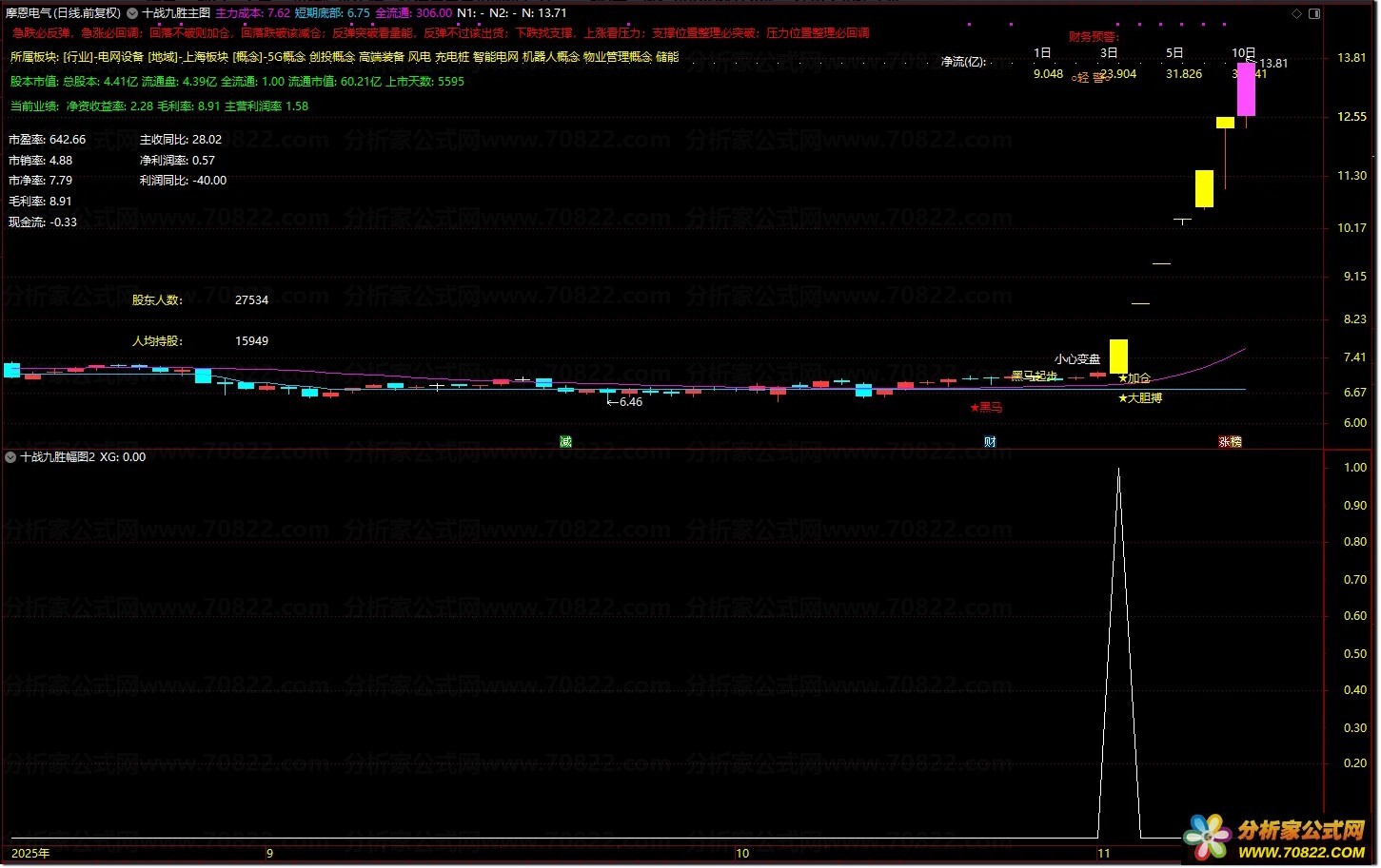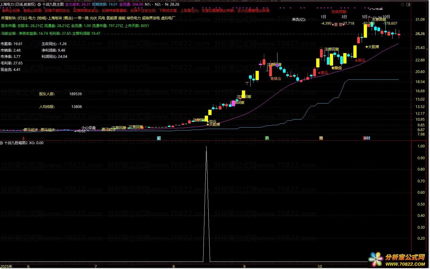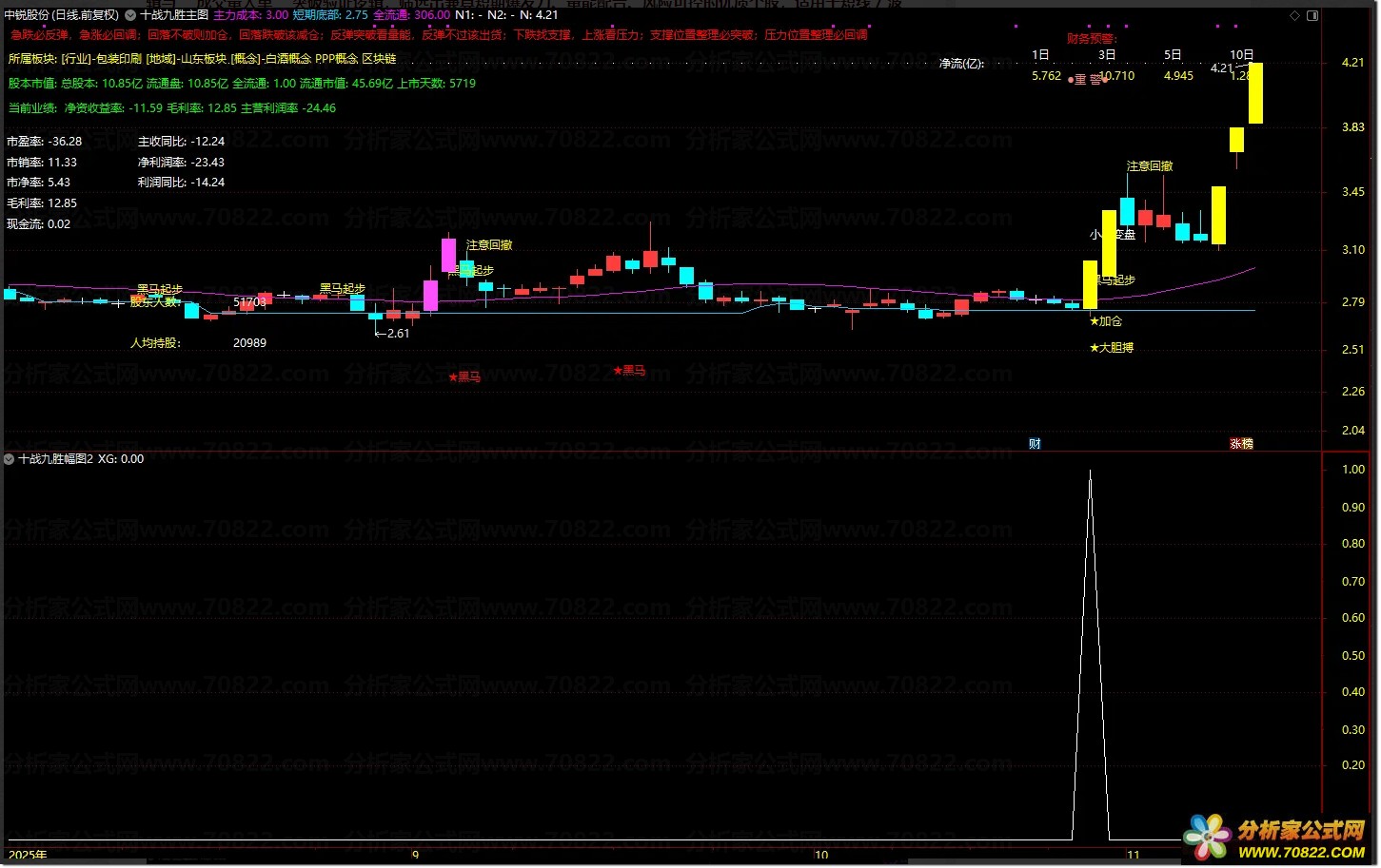 〖十战九胜〗主副图选股指标——筛选短期爆发力强 量能配合佳 风险可控优质个股 指标说明: