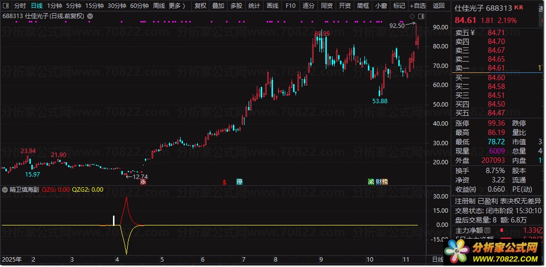 1、该指标核心适用于捕捉阶段底部刚启动的潜力股。当指标发出信号当日或附近出现涨停板时,这常是股票从阶段底部启动的明确信号,后续多伴随显著涨幅。