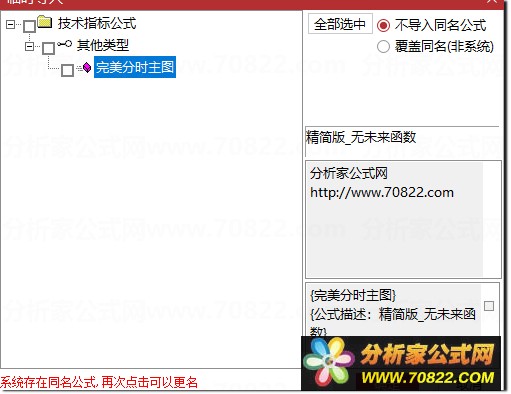 * 关于股票公式时间限制,如果在引入大智慧公式,交易师公式或者飞狐公式的时候,发现公式名称栏是空白的,这时候调整电脑时间到1997年,又能出现公式名称,并且能正常显示,可能是公式使用期限已过。