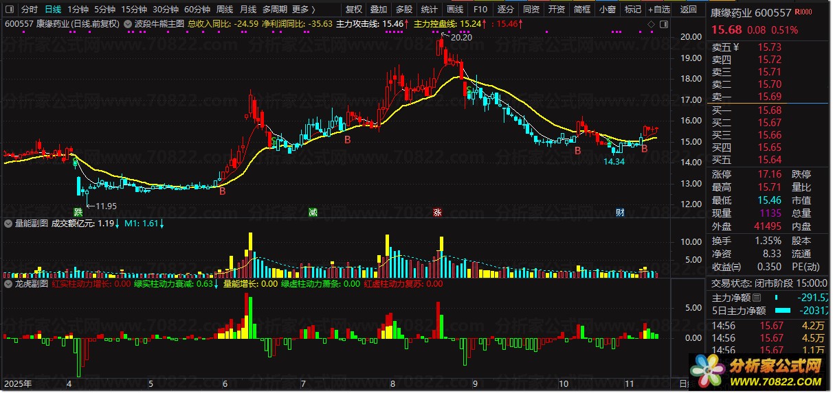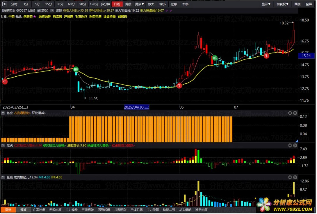 首先展示股多多仿写版本的指标效果图,可以与上图进行对比查看