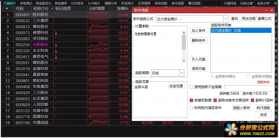 使用此公式选股,在早上竞价结束,开盘前的9点25分-9点30间进行选股。