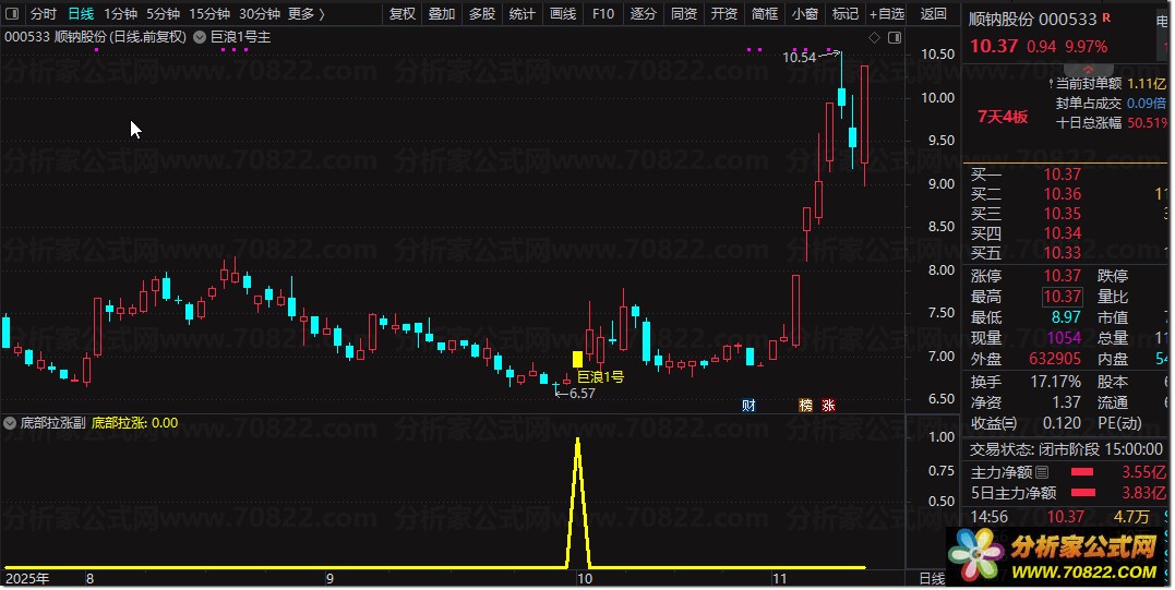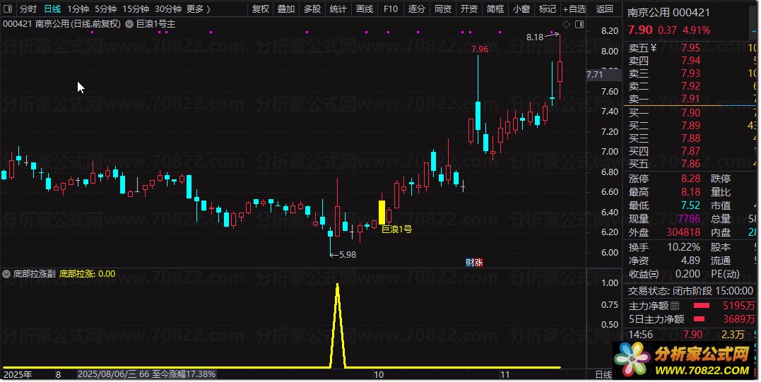 底部拉涨指标包含1副图+1选股,专为捕捉底部反转形态设计。该指标通过精准识别底部拉涨低吸信号,实现手机电脑通用操作,信号稳定不漂移。