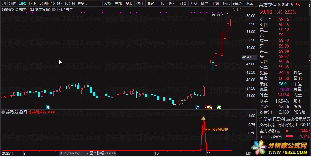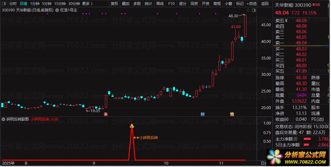 小碎阴反转指标含副图与选股功能,专研下跌过程反转信号,无未来函数,指标源码适配手机电脑,信号仅供参考。