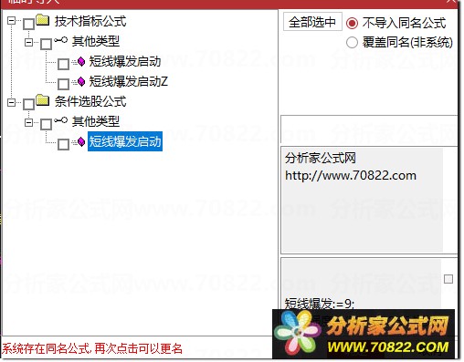 * 关于股票公式时间限制,如果在引入大智慧公式,交易师公式或者飞狐公式的时候,发现公式名称栏是空白的,这时候调整电脑时间到1997年,又能出现公式名称,并且能正常显示,可能是公式使用期限已过。