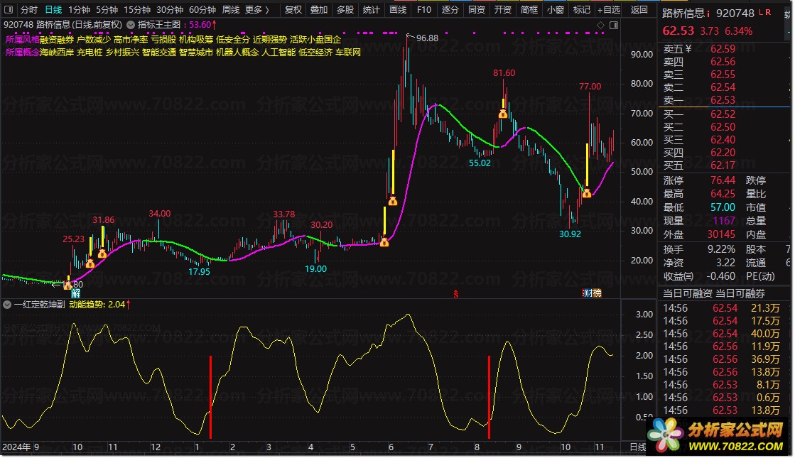 通达信『一红定乾坤』趋势线中出红柱,乾坤转移立刻涨,安全又高效