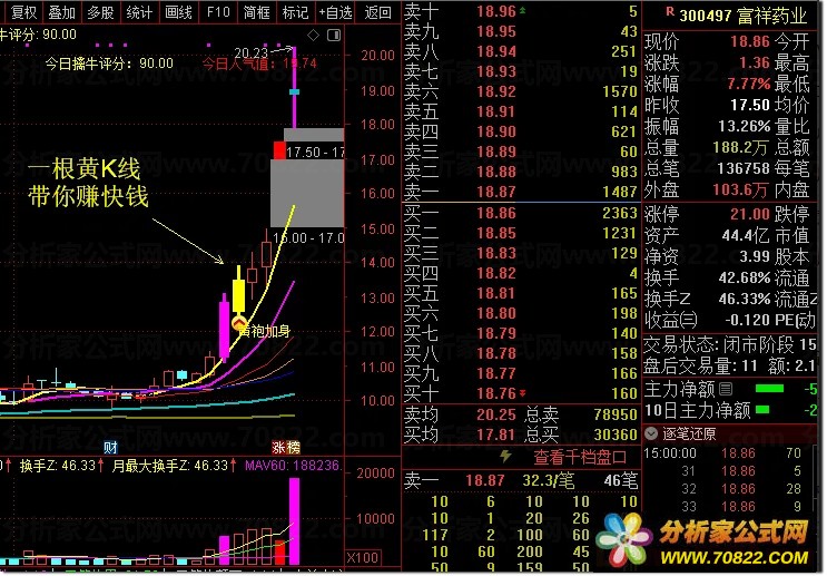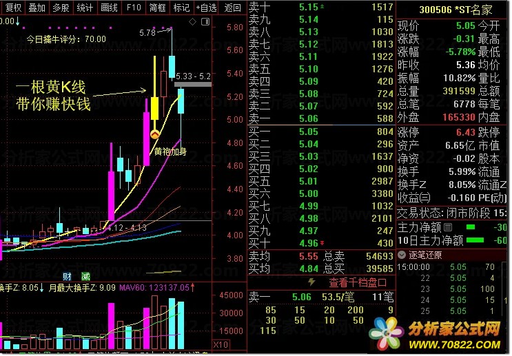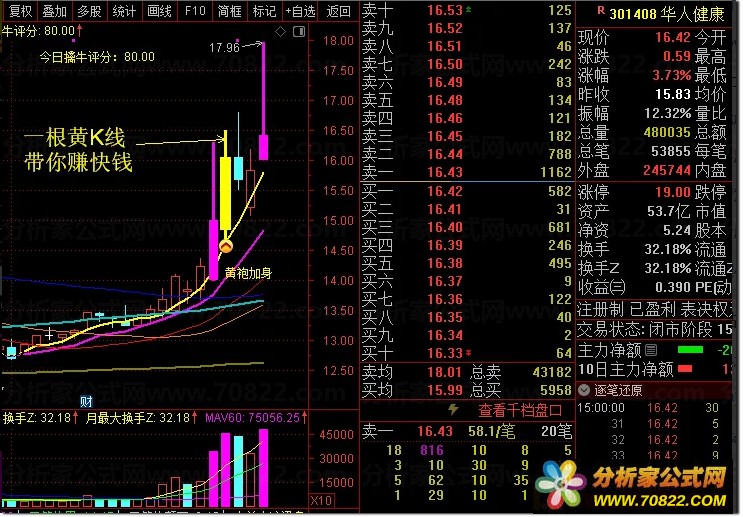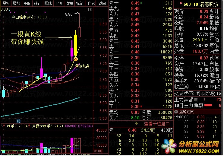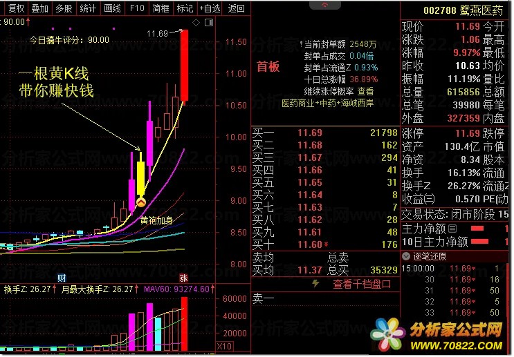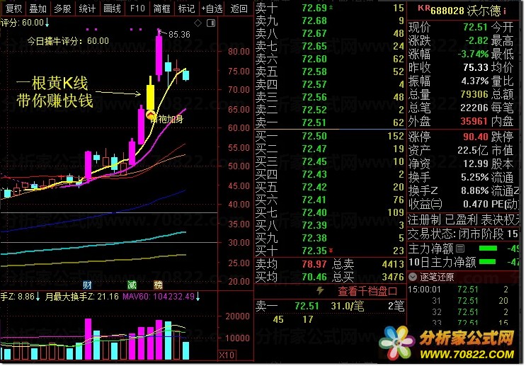 【黄袍加身】一根黄K线快速盈利策略——主副图+选股指标 精准配置 一、本策略核心价值: