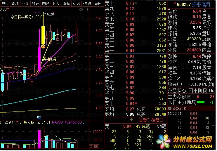 指标专为通达信系统设计,安装使用流畅稳定。财务函数采用"自由流通股本"计算(FINANCE46),本函数是非未来函数,信号收盘即固定无漂移,保障数据真实性。用户可安心参考操作。